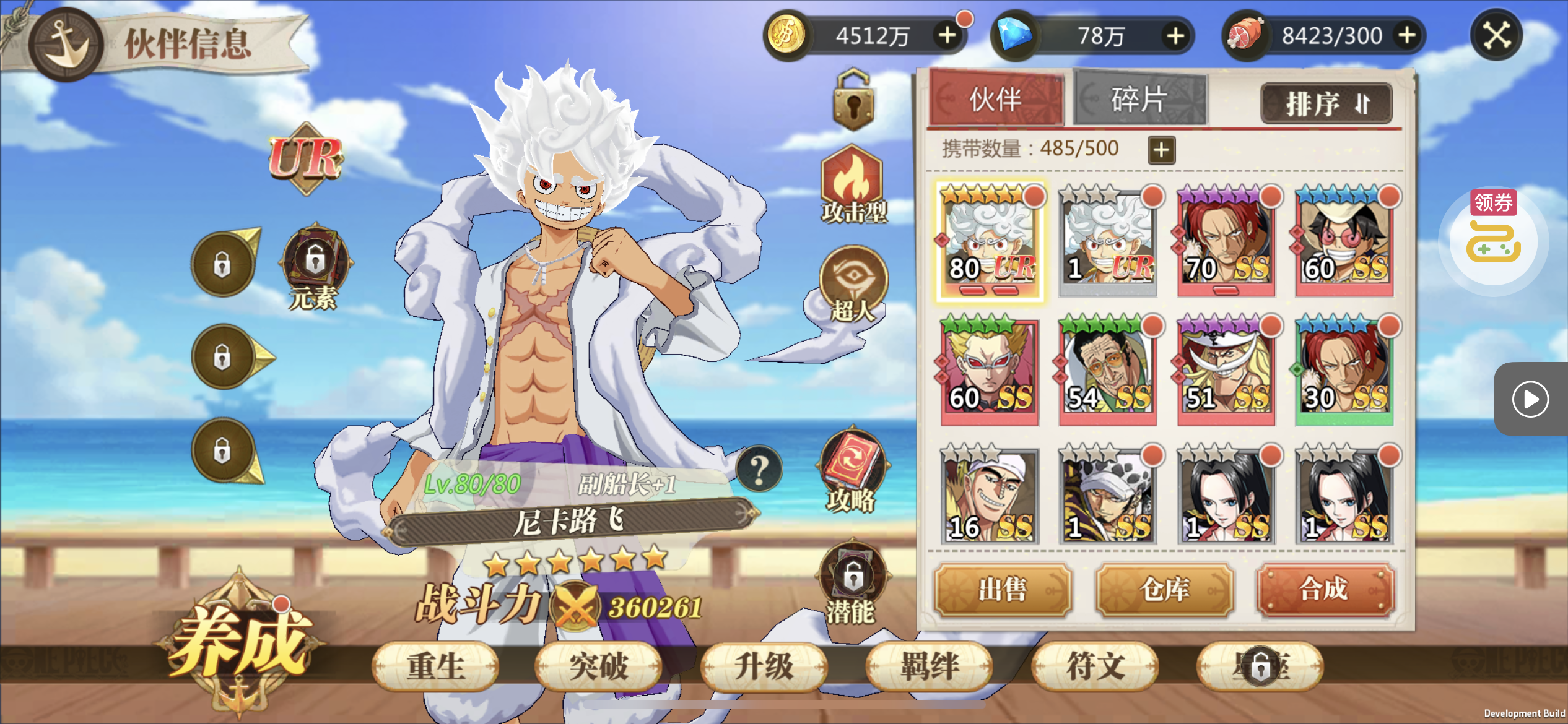 还有54000+贝利,11个ur草人,2个雷利本体,副本推到22章了,装备阵容基本成型