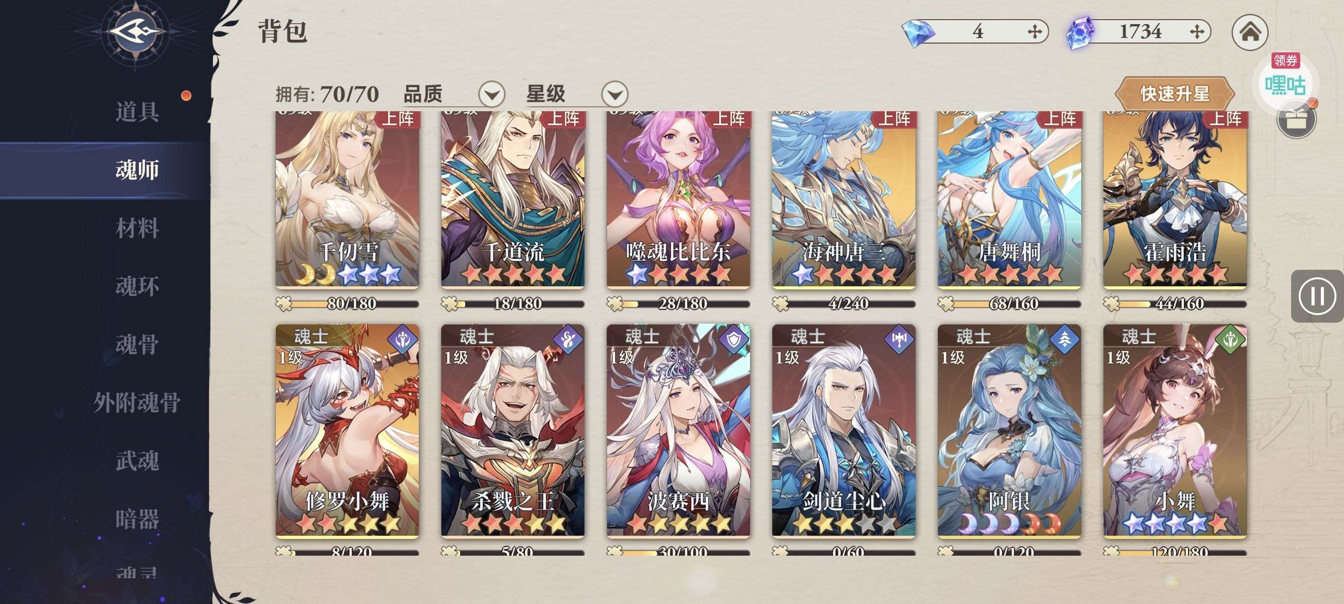 64级,各种洪荒角色齐全,魂环、魂骨等均是顶配