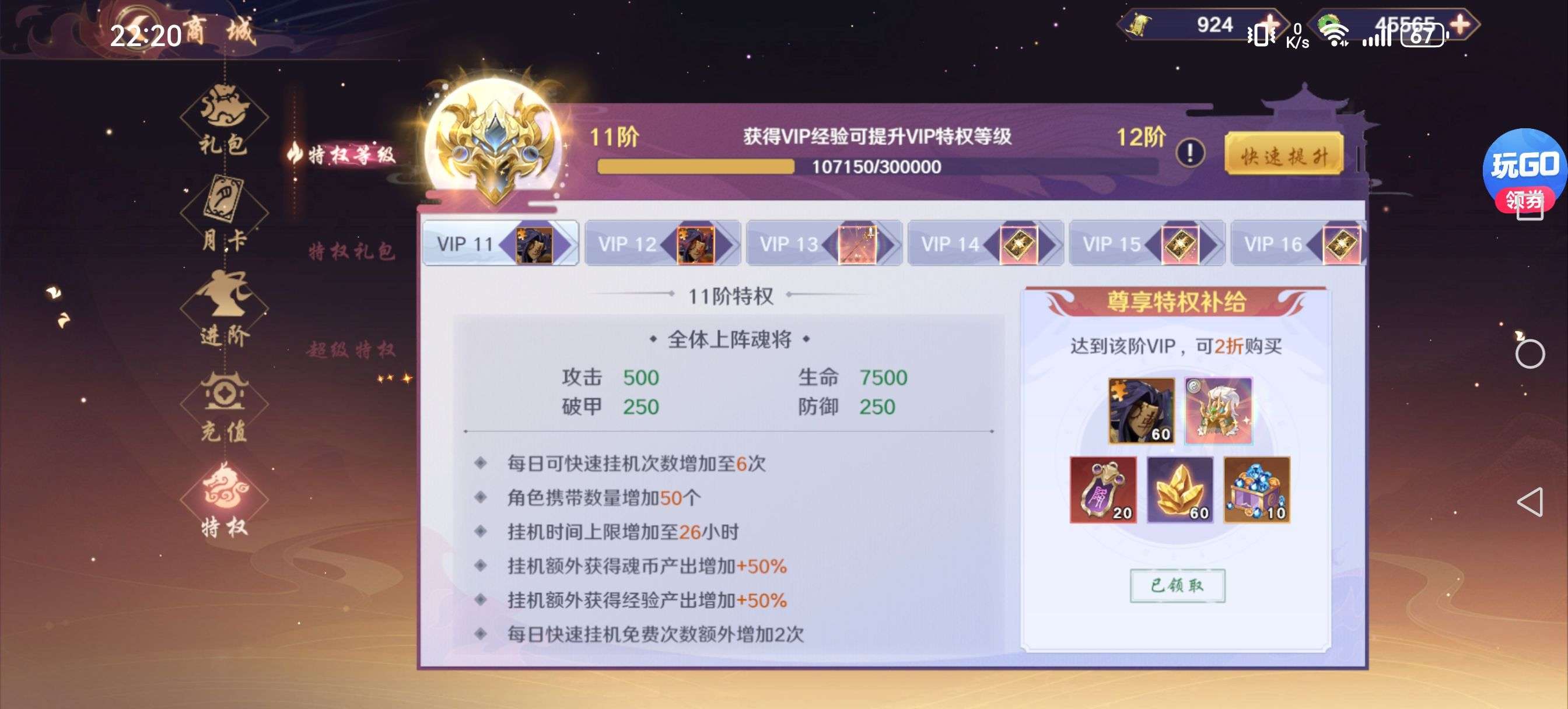 一堆圣晶石6小时*1、募魂令*10、暗淡原石*40(每个账号限领一次)