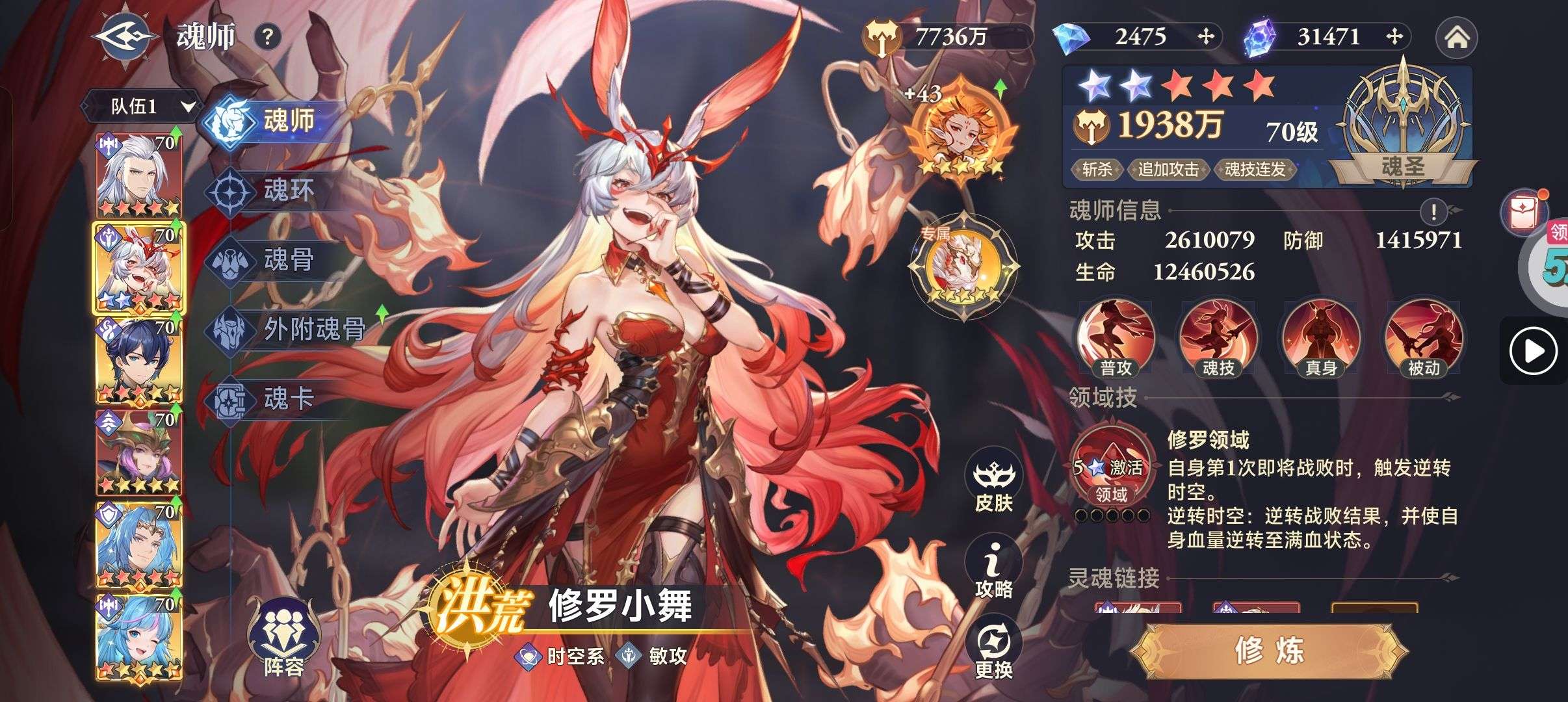 64级,各种洪荒角色齐全,魂环、魂骨等均是顶配