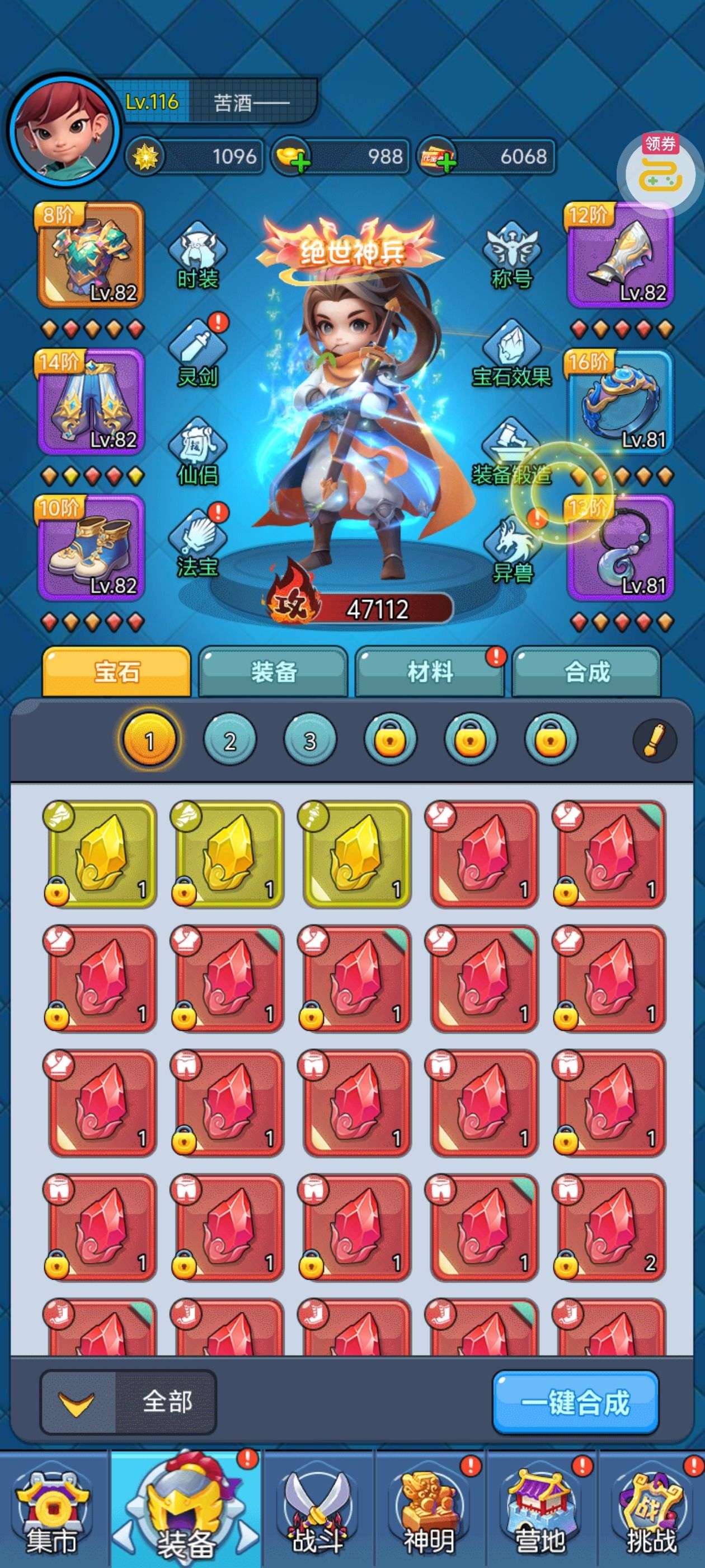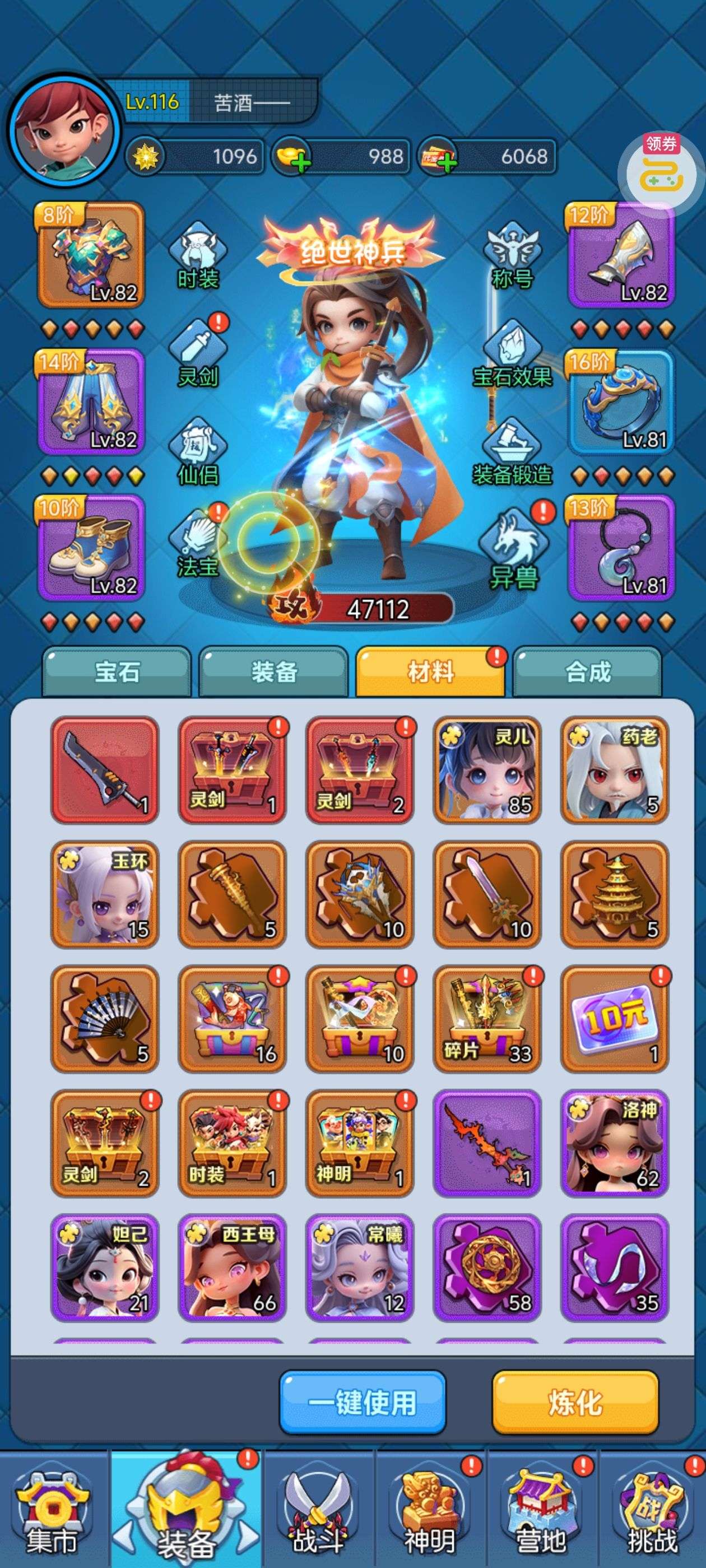精品号,啥都有,宝石每个神明的套装都有,洗练石1000多
