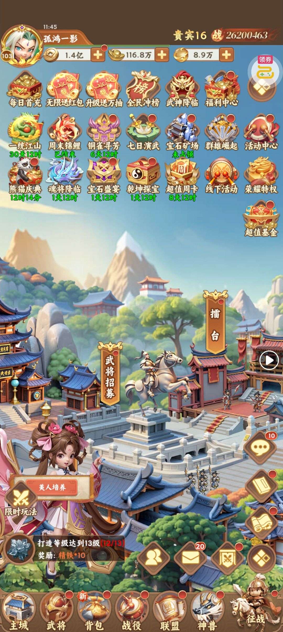 《天下争霸三国志》一款以三国为主题的放置卡牌公益服手游!