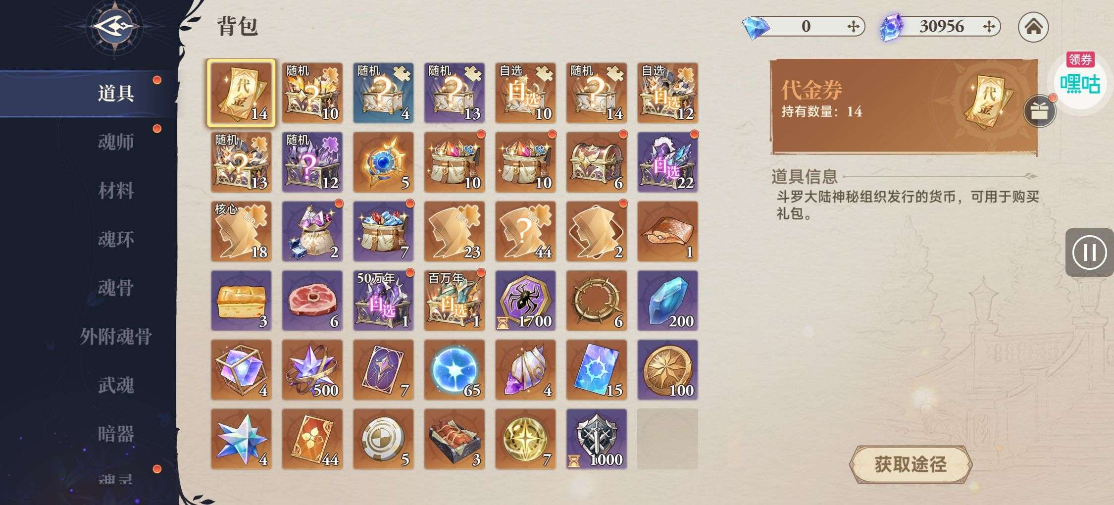 魂晶*888,魂师召唤券*10,武魂水晶*5(每个账号限领一次)