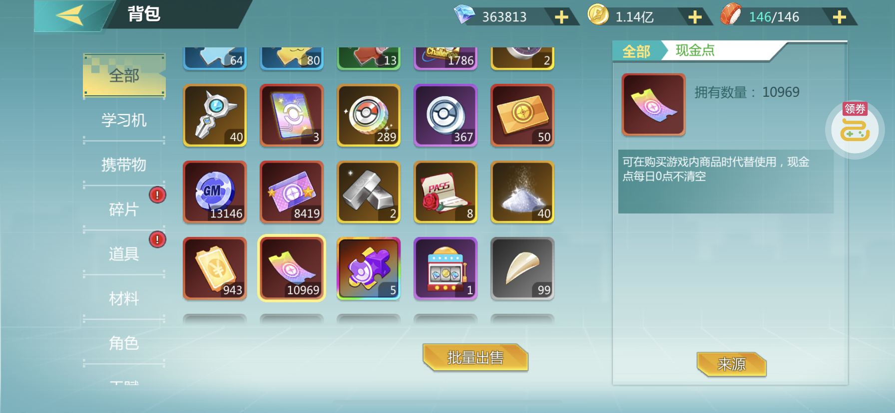 背包大量资源,所有特权已开