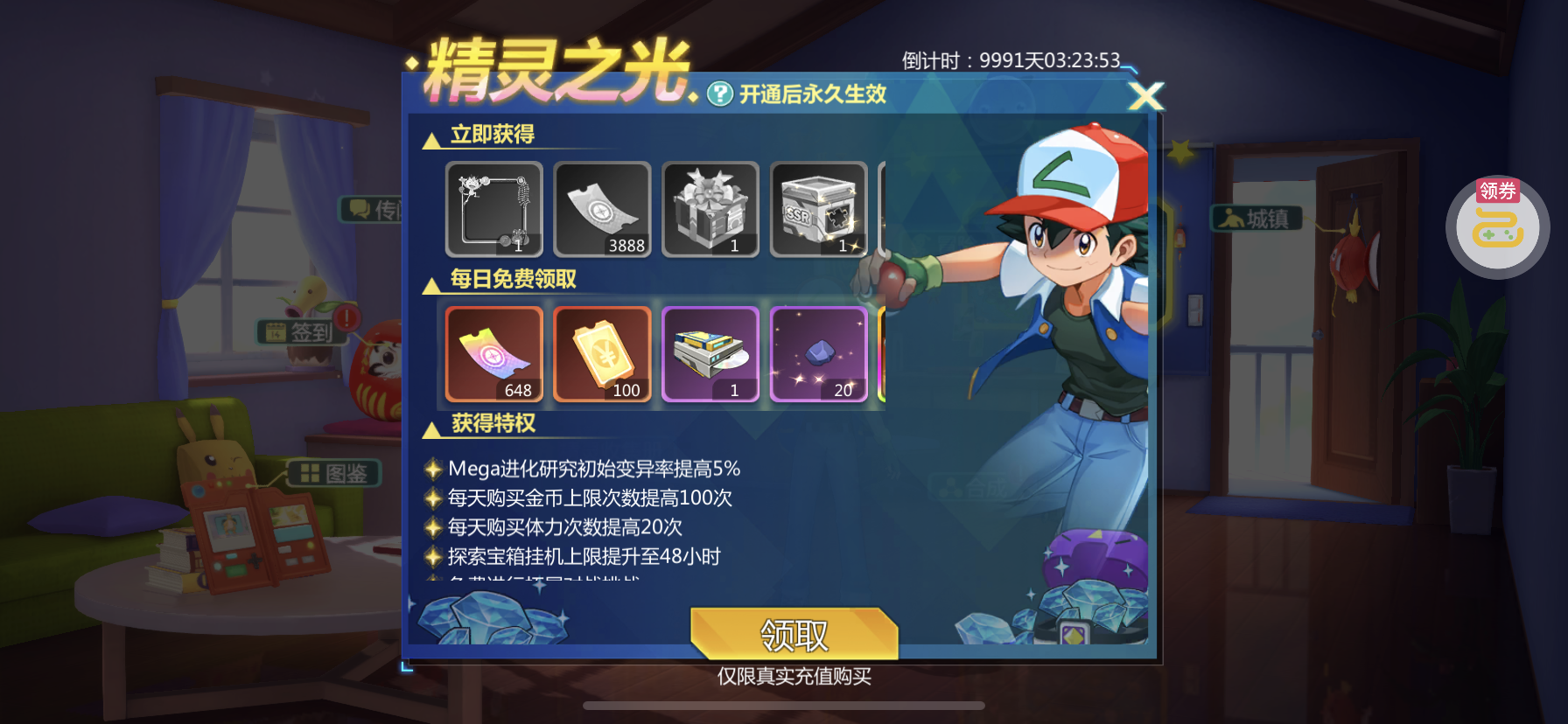 已购买精灵之光特权和养老特权