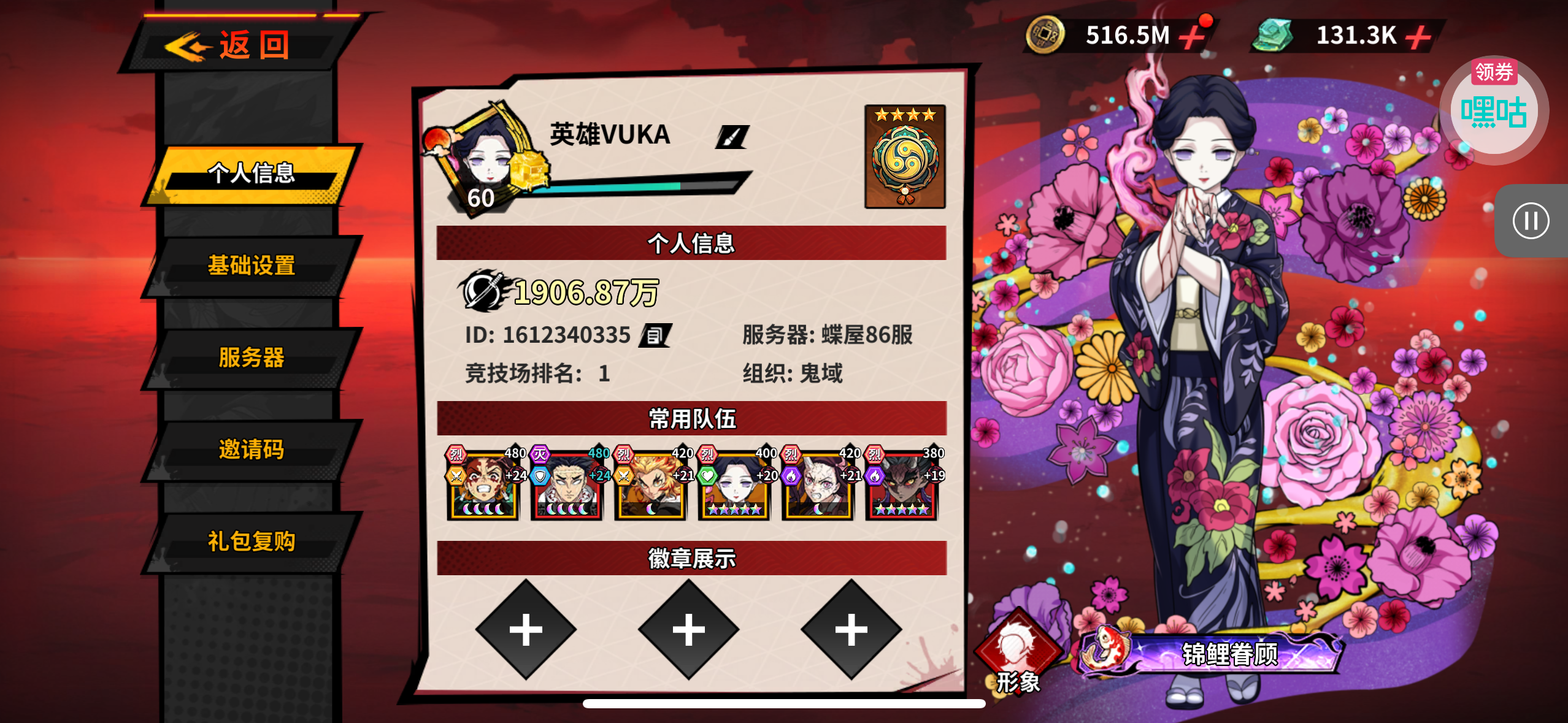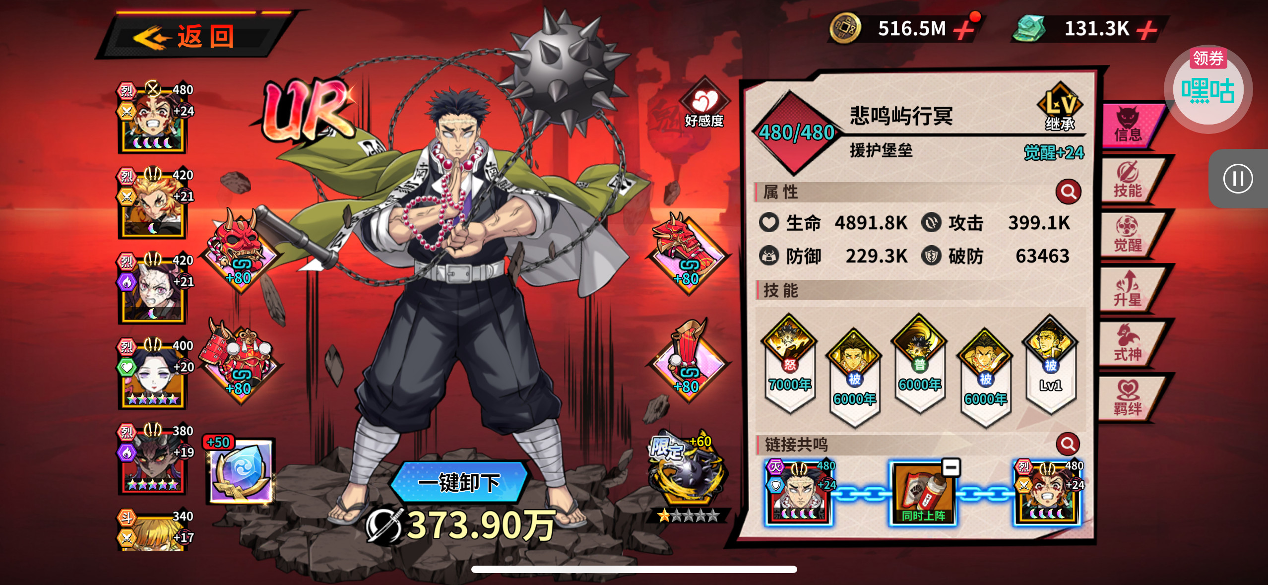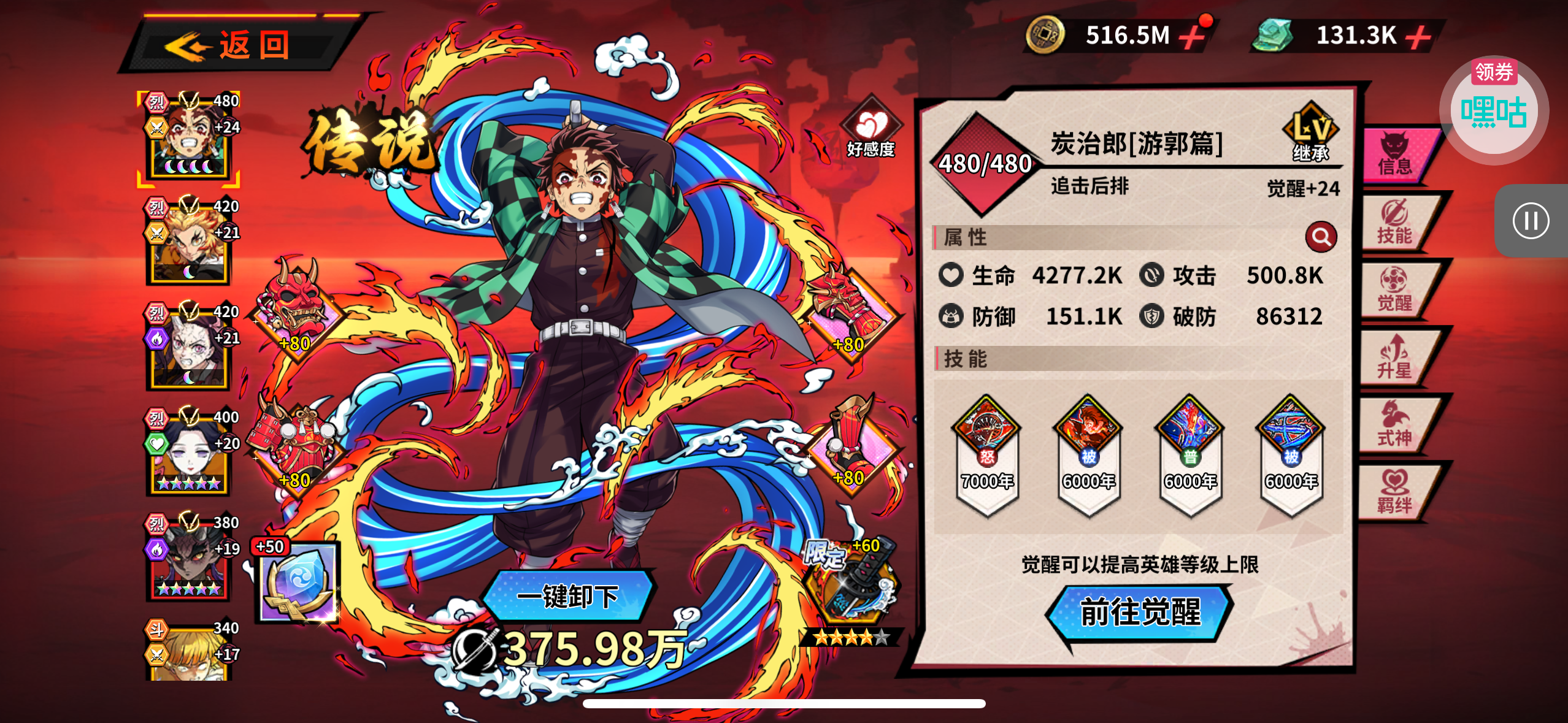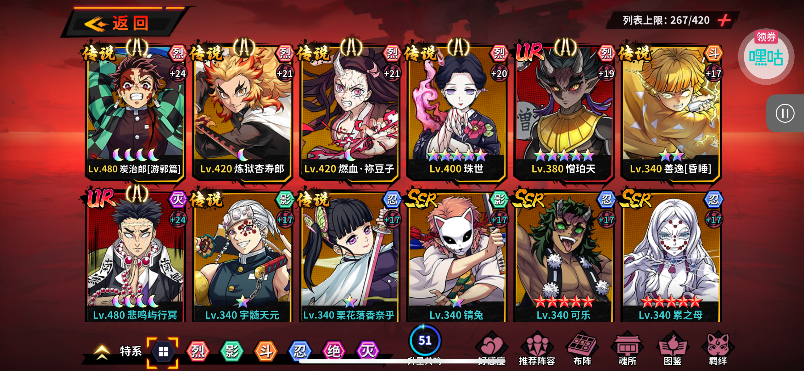 角色81级,炭治郎和黑死牟都是21星,充了差不多400