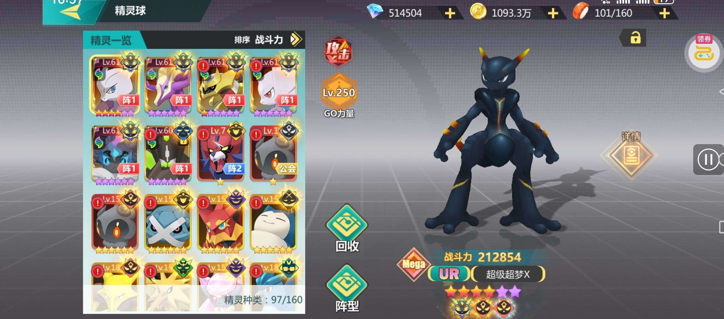 63级,有闪光神兽十几只,100多破碎石