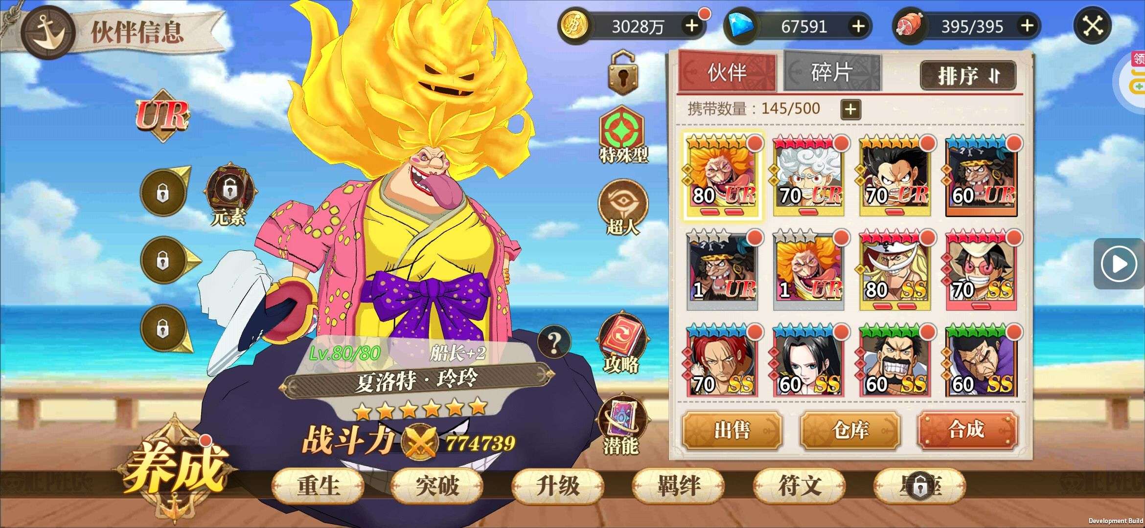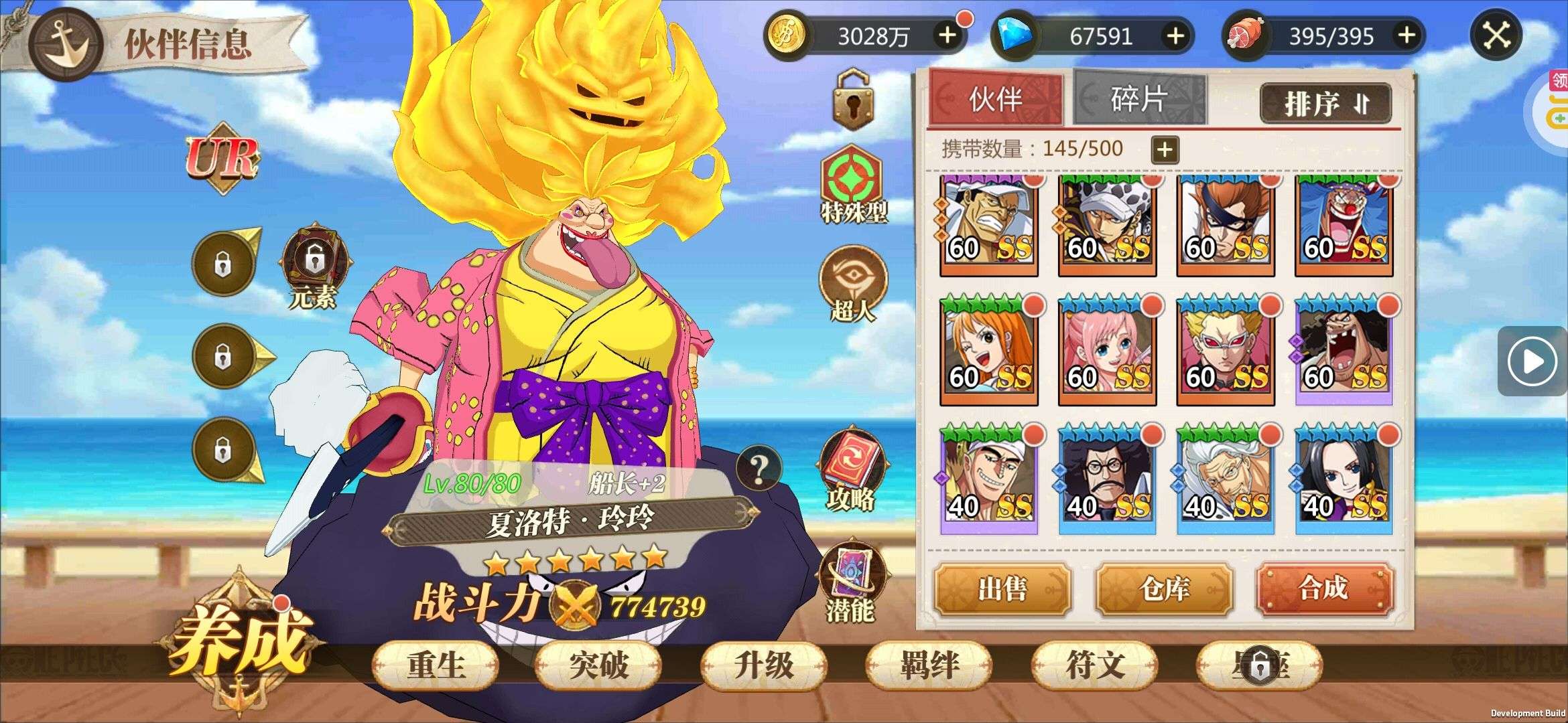 还有54000+贝利,11个ur草人,2个雷利本体,副本推到22章了,装备阵容基本成型