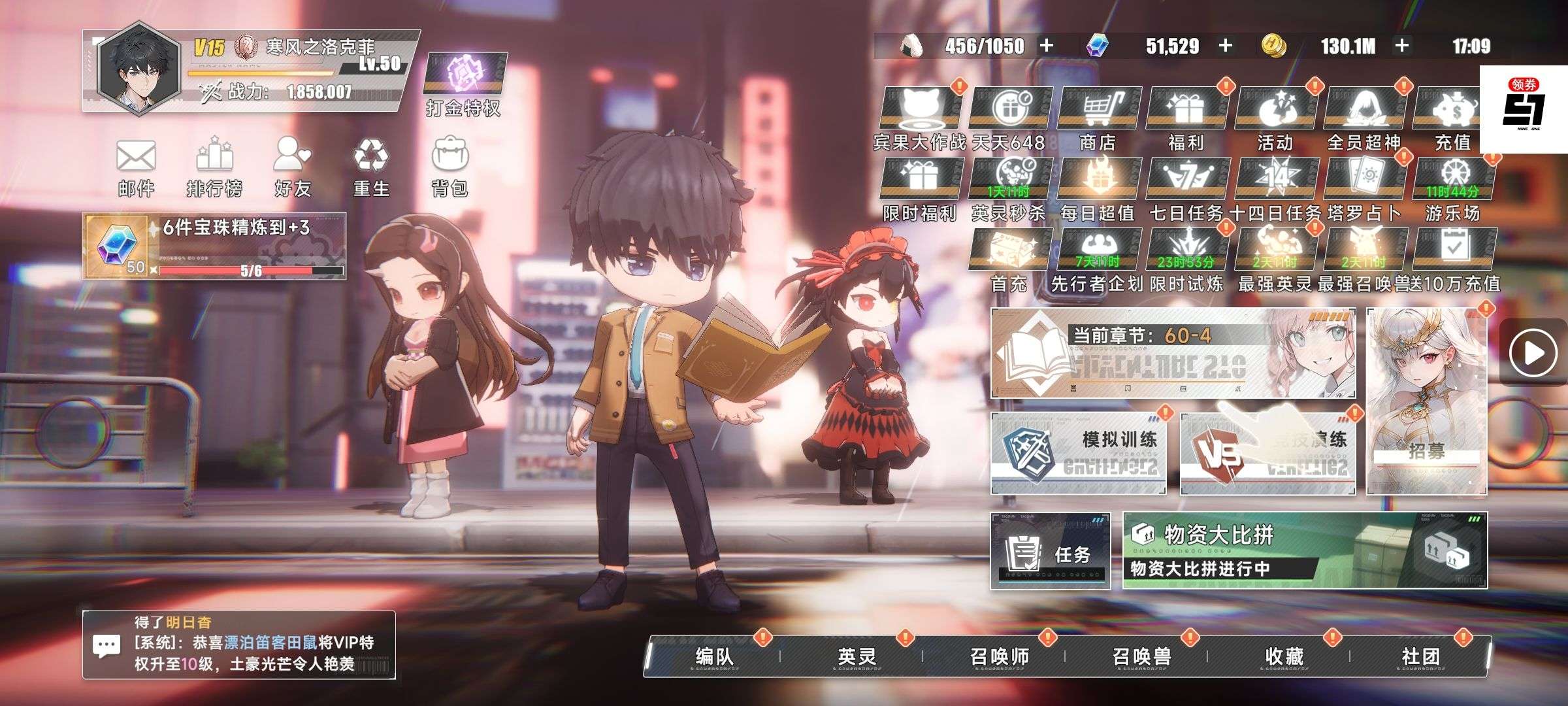 强化药剂*200、钻石招募币*20、金币*50W(每个账号限领一次)