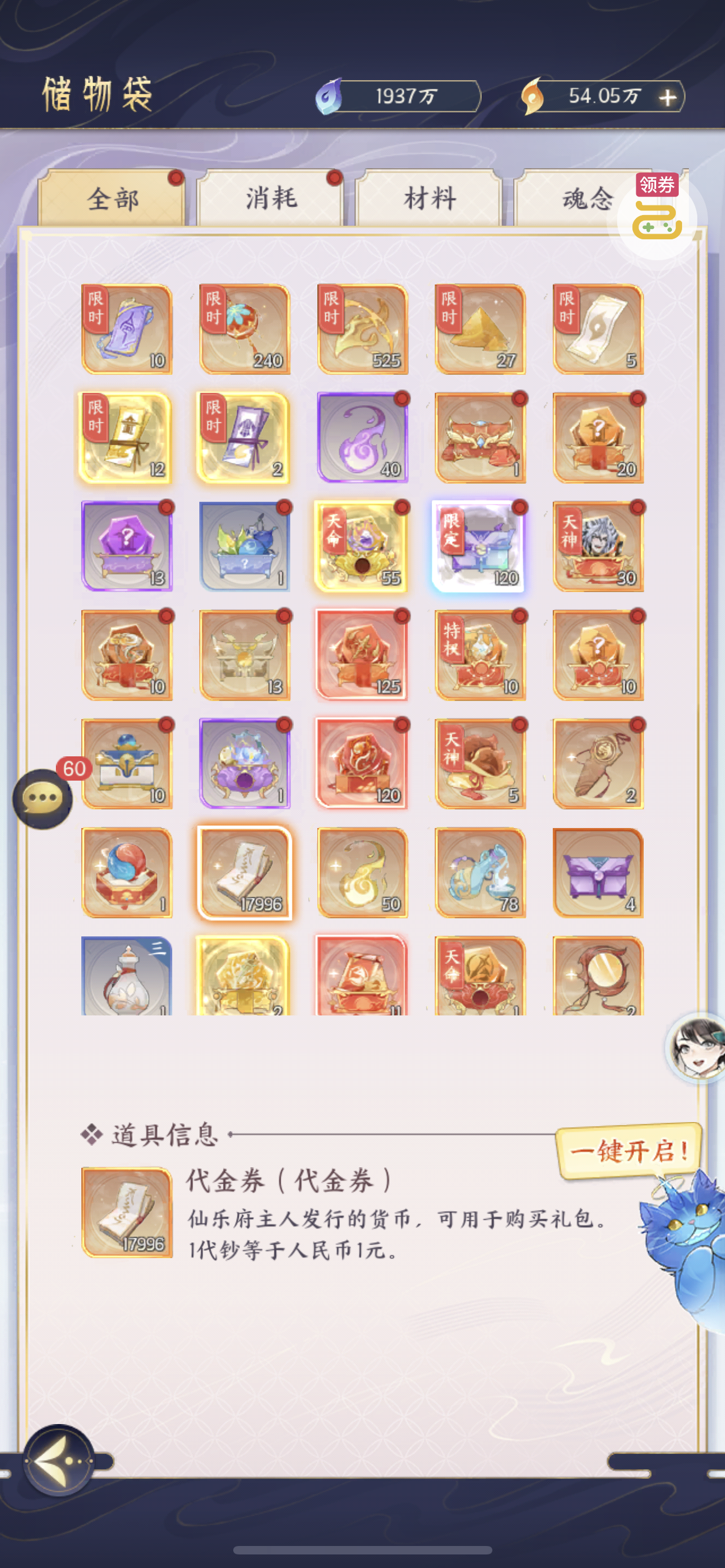 一堆圣晶石6小时*1、募魂令*10、暗淡原石*40(每个账号限领一次)
