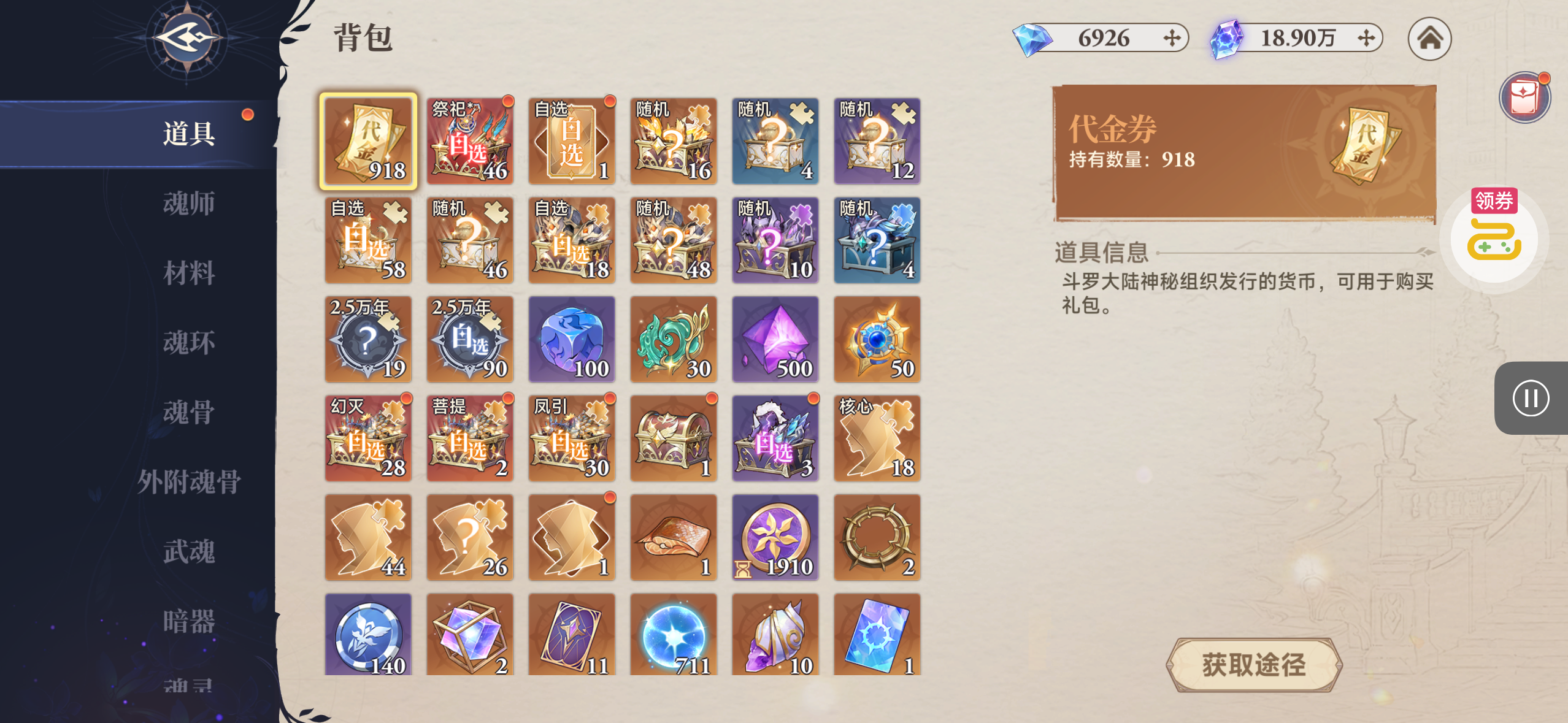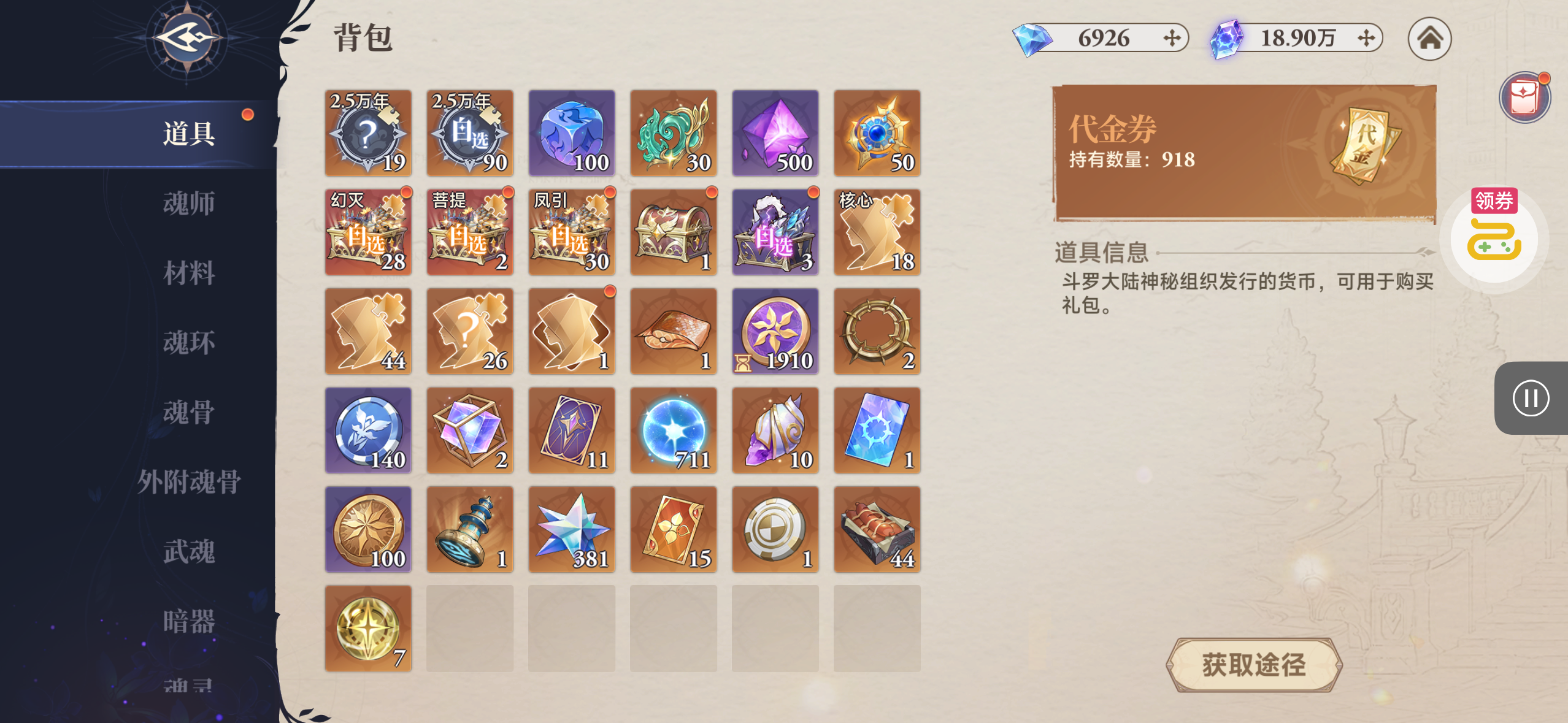 魂晶*888,魂师召唤券*10,武魂水晶*5(每个账号限领一次)