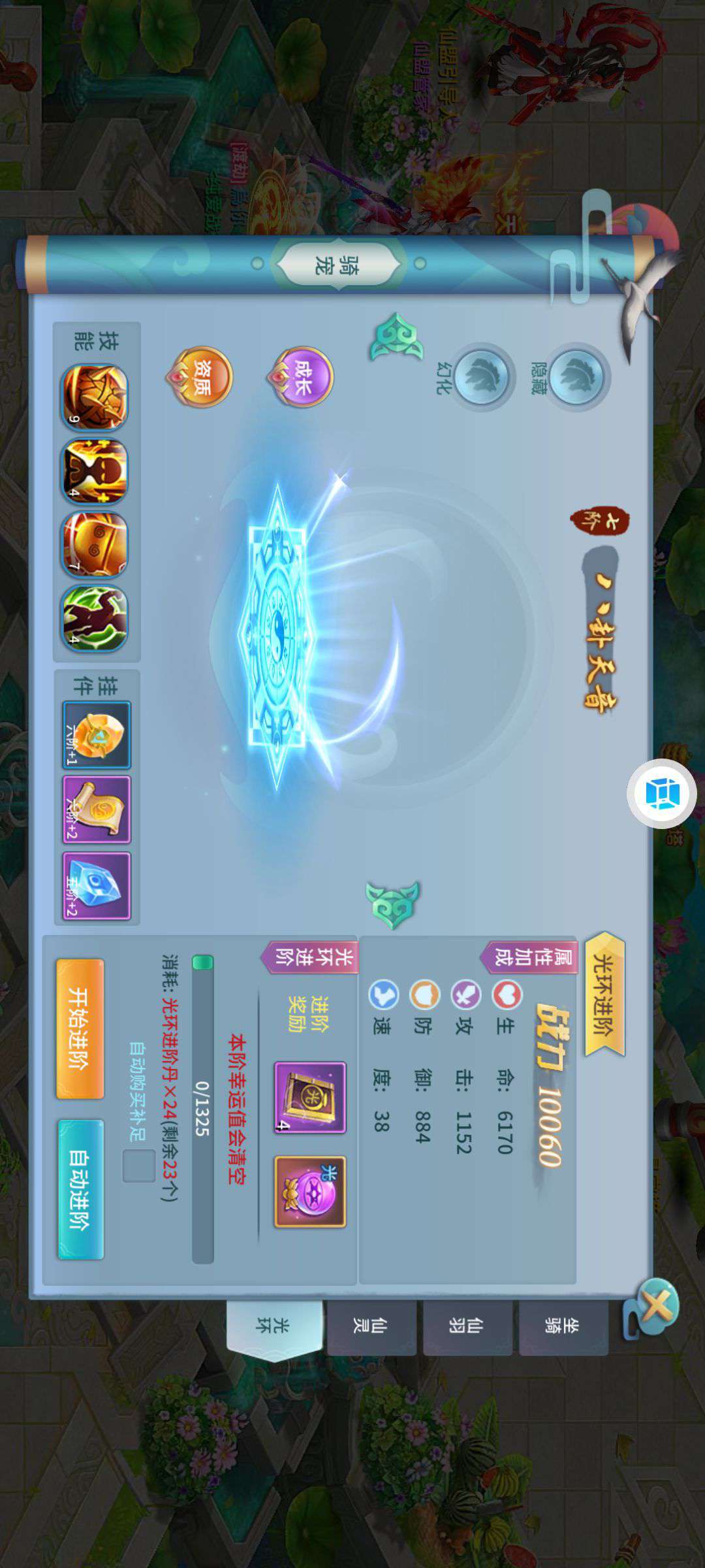 进游戏就能看到,好多东西都还没用,三个天将吃满了属性,第四个也快出来了
