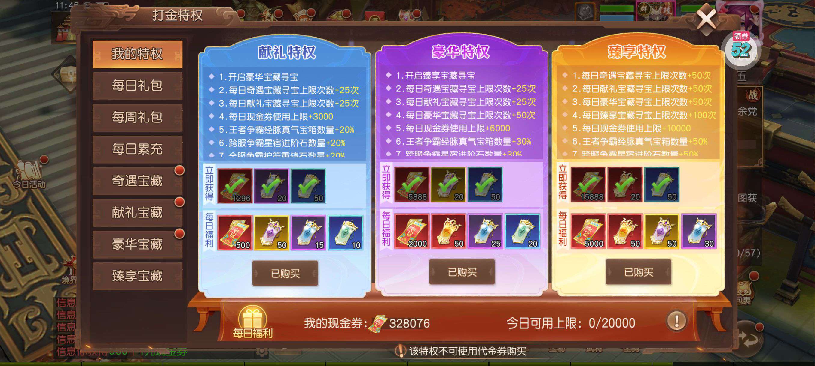 一直玩着在,该有的角色都有,特权全开,等时间慢慢养成即可