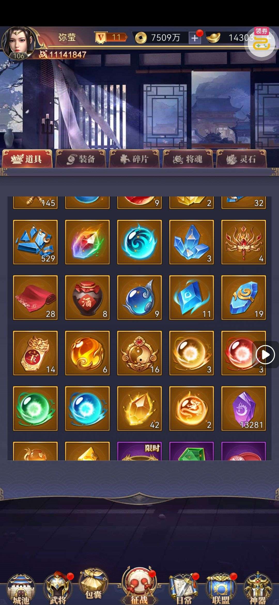 一堆圣晶石6小时*1、募魂令*10、暗淡原石*40(每个账号限领一次)