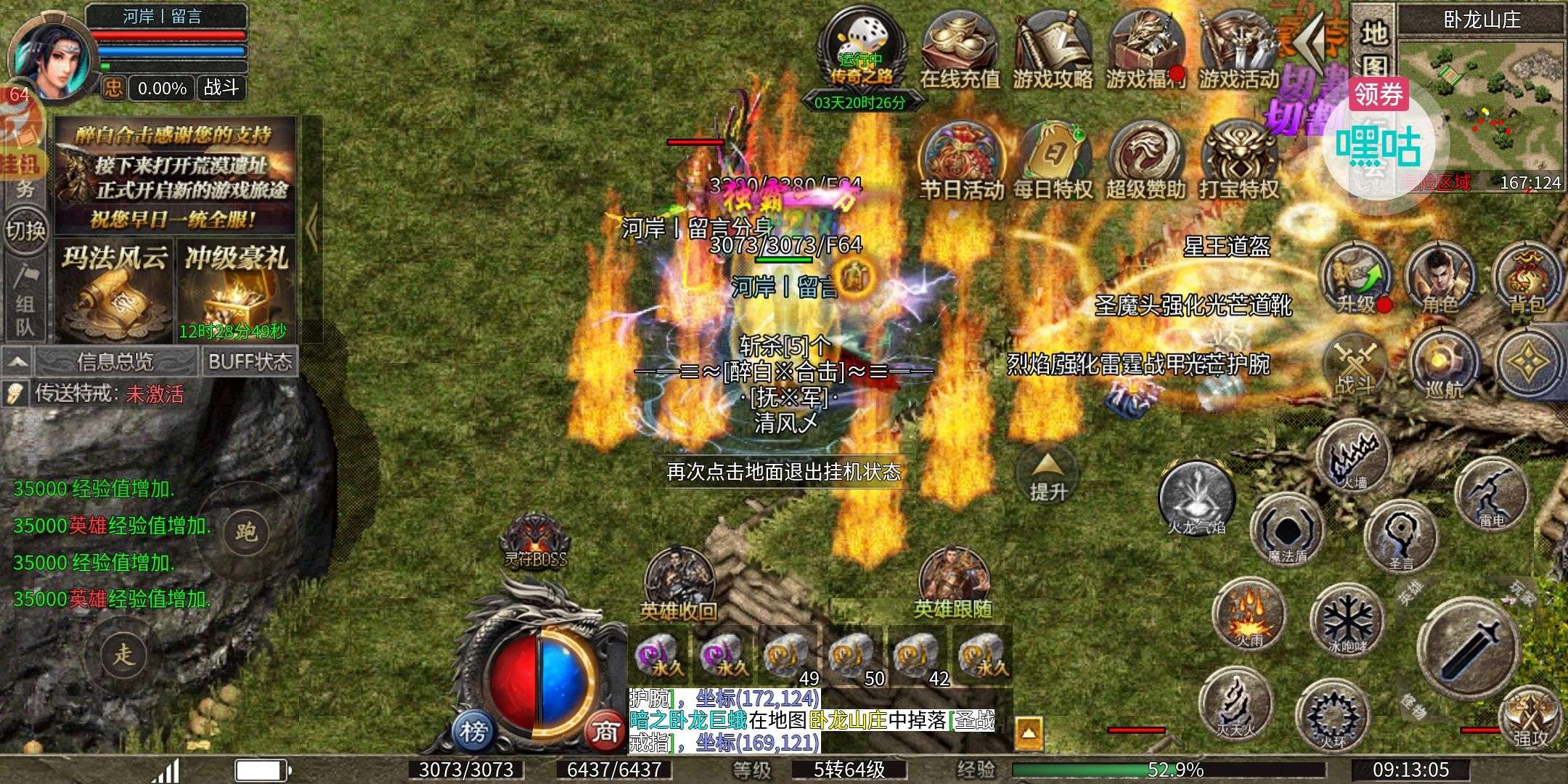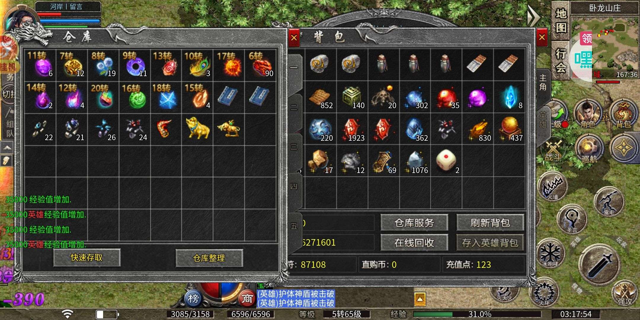 双70 ,打宝特权已开,冠名称号传送戒指都有,灵符元宝材料号上都有
