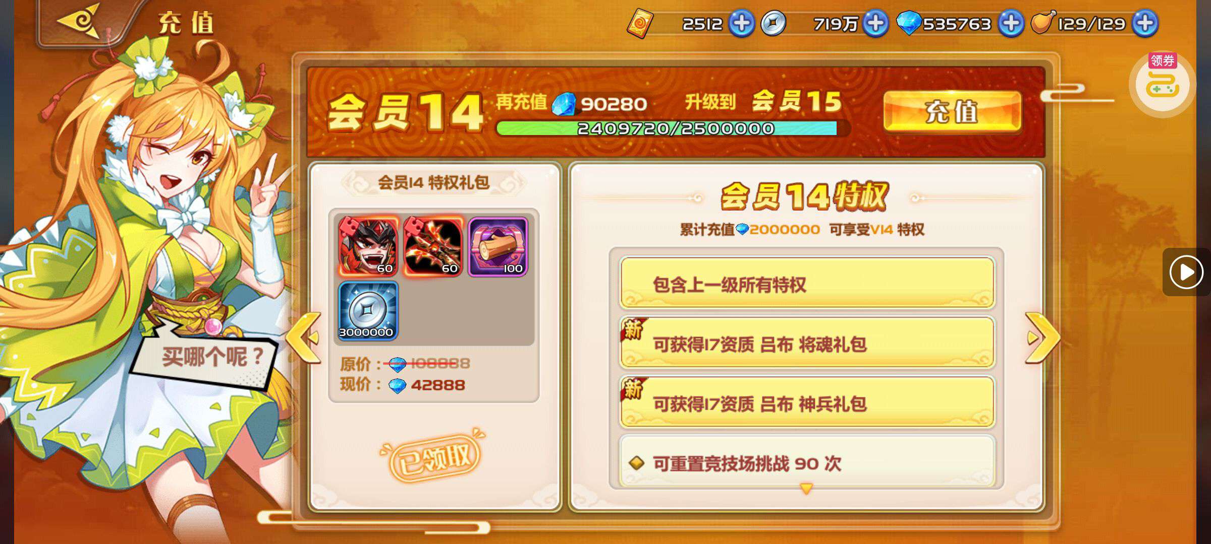 元宝*6480(每个账号限领一次)