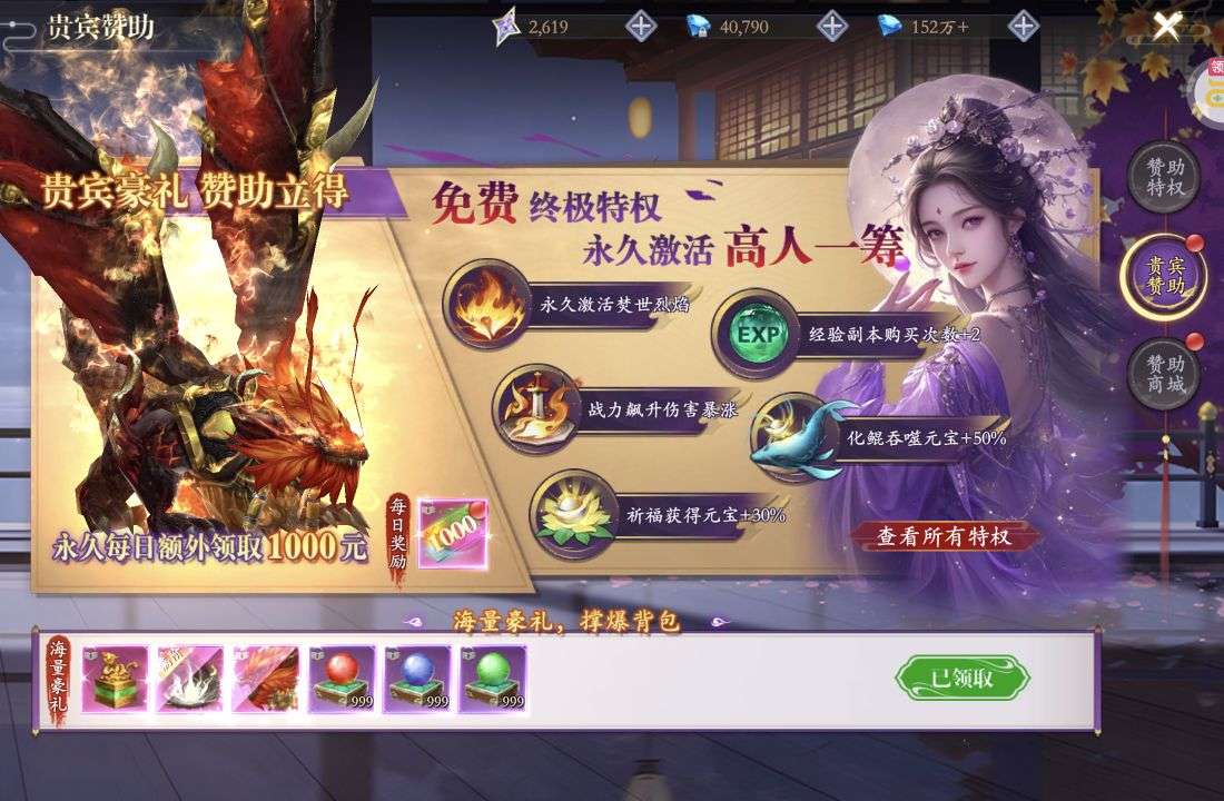 元宝*6480(每个账号限领一次)