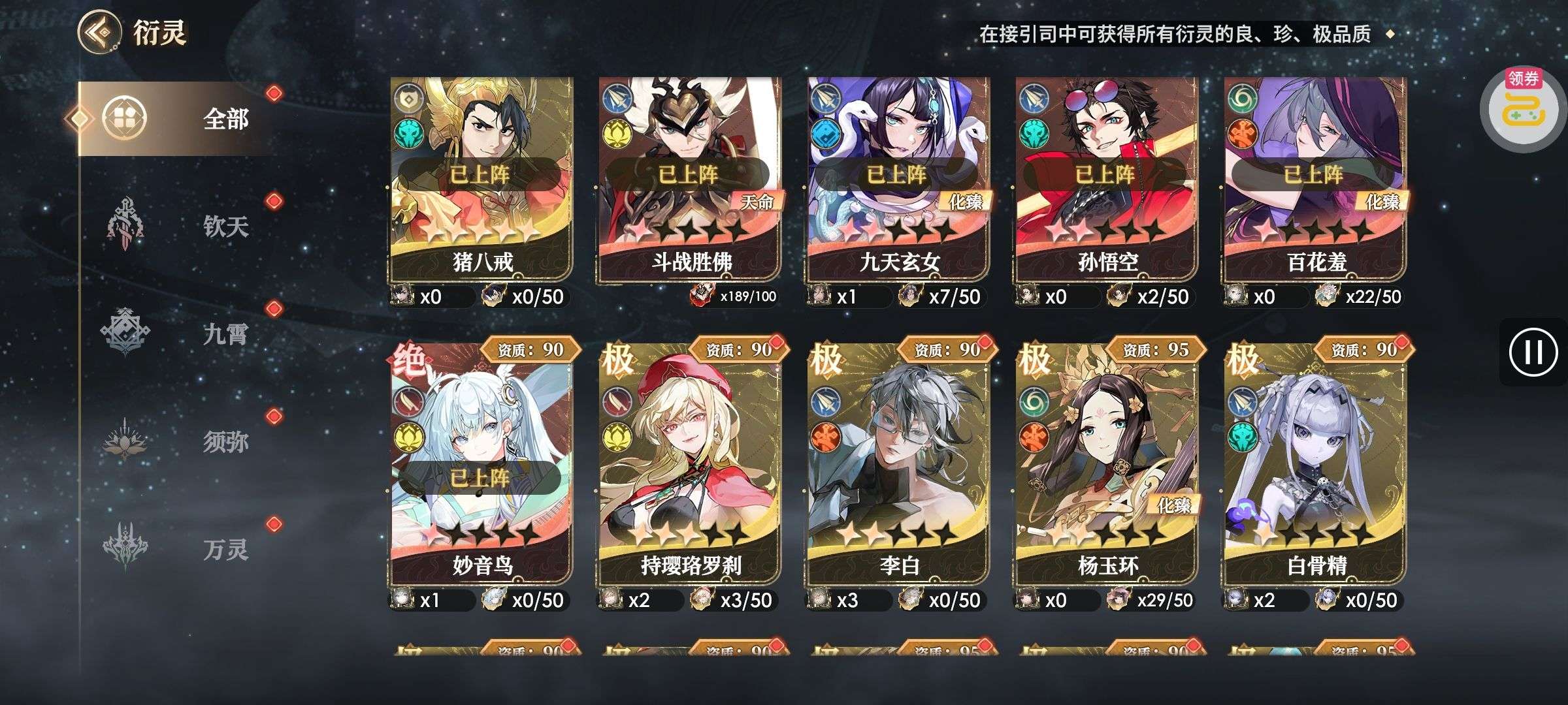 天命大圣差34碎片升绝四星 天命白骨开图鉴了 圣一星九玄;绝五星百花 剩8.8万玉相
