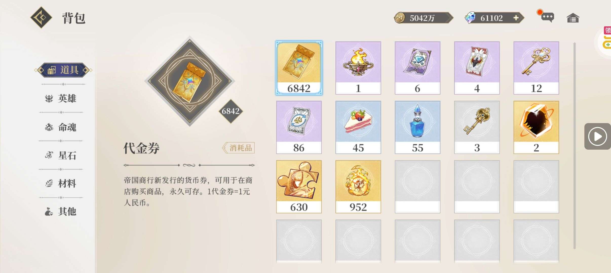 一堆圣晶石6小时*1、募魂令*10、暗淡原石*40(每个账号限领一次)