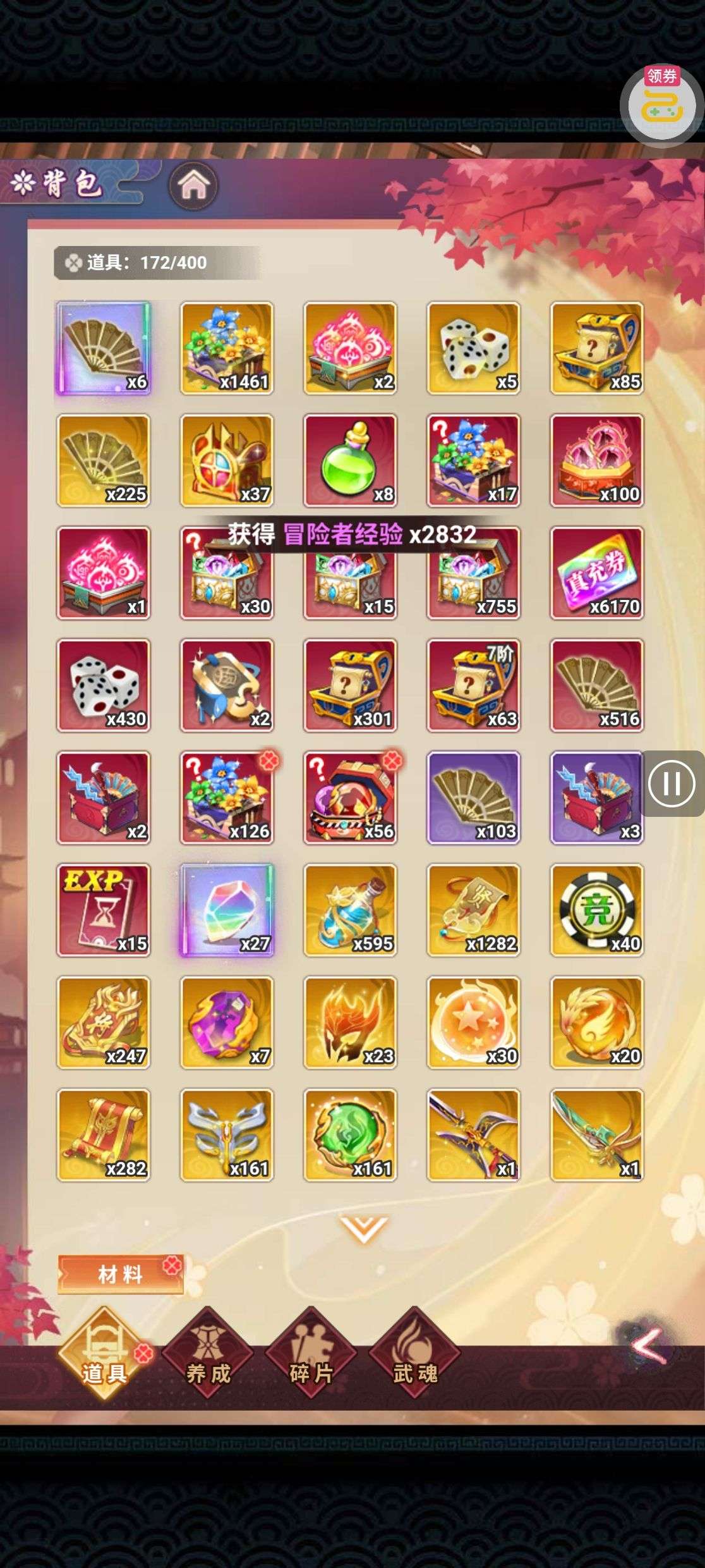 五行心法x1、洗炼石x20、2倍经验秘药x2(每个账号限领一次)