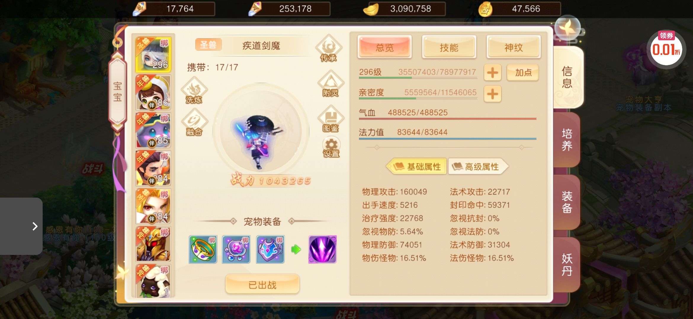 原4区榜一号,材料一堆,没时间转换战力。23技能宠物,任务无压力,破隐身宠物,巅峰89,帝尊全开,装备特技全,符文,什么的应该都不差,轻松有时间上110战力,副将全,