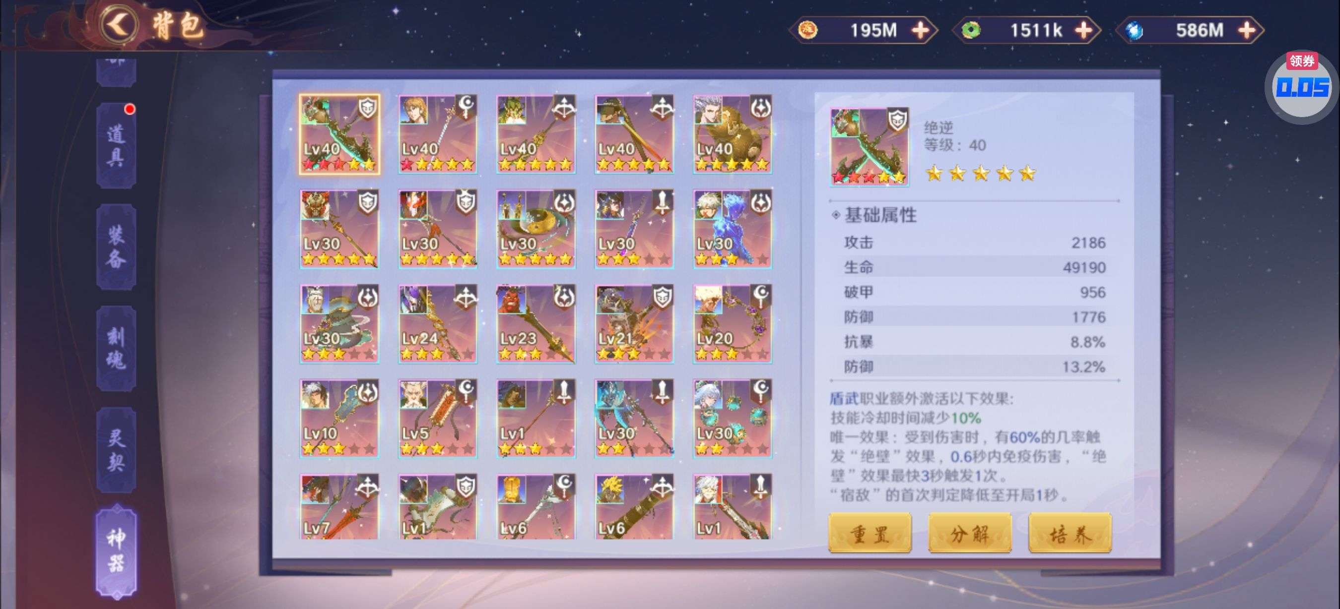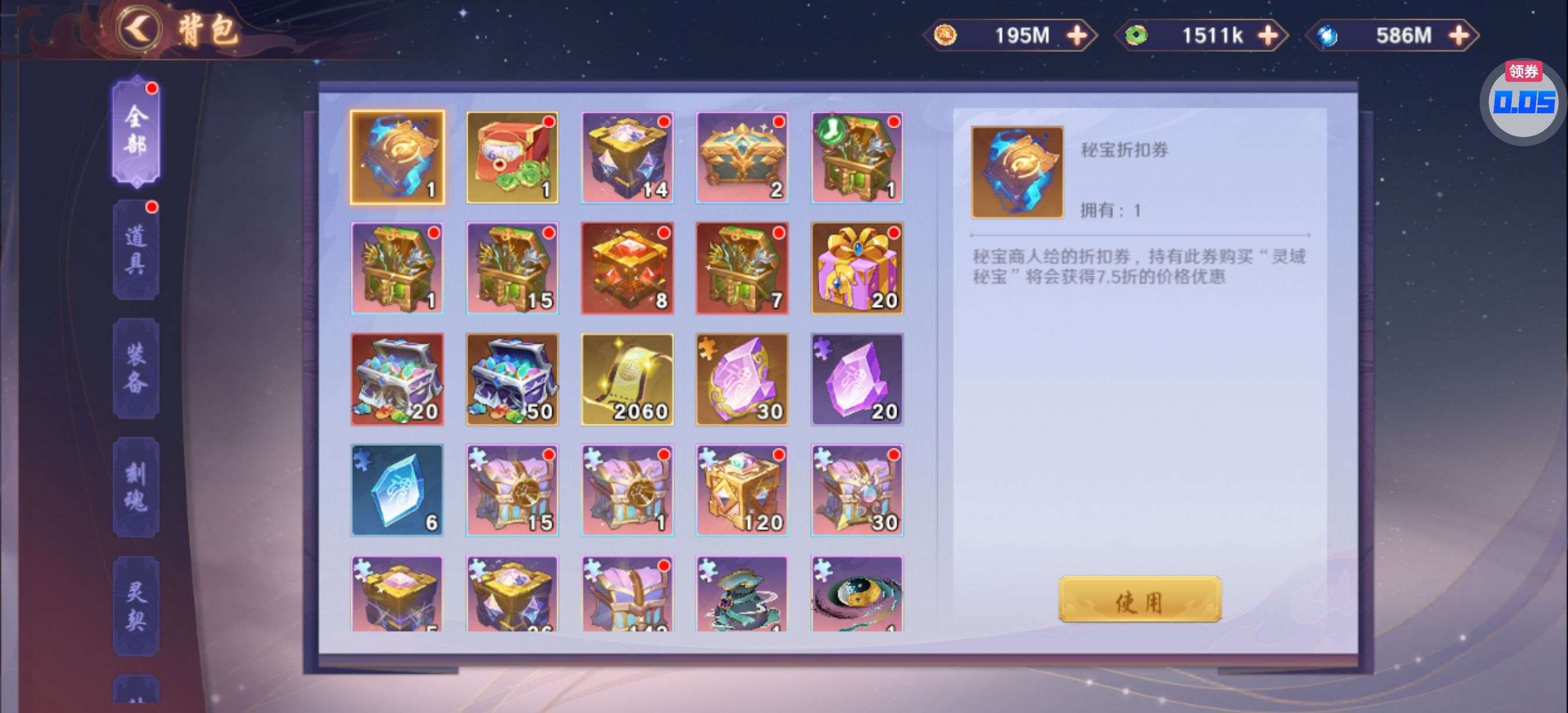 灵化符·骑*20、突破丹·骑*3、魂力丹*30、1.5倍经验药水*1(每个账号限领一次)