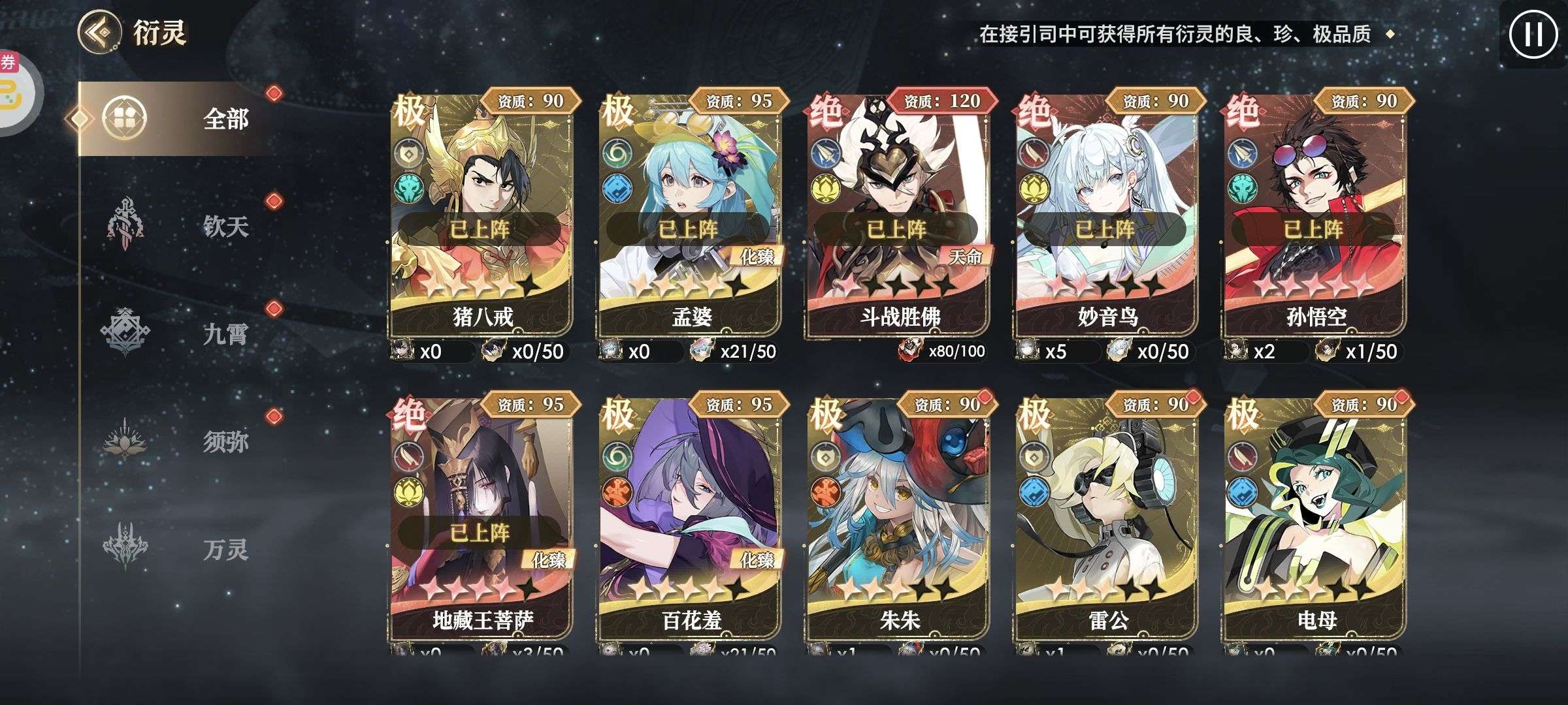 天命大圣差34碎片升绝四星 天命白骨开图鉴了 圣一星九玄;绝五星百花 剩8.8万玉相