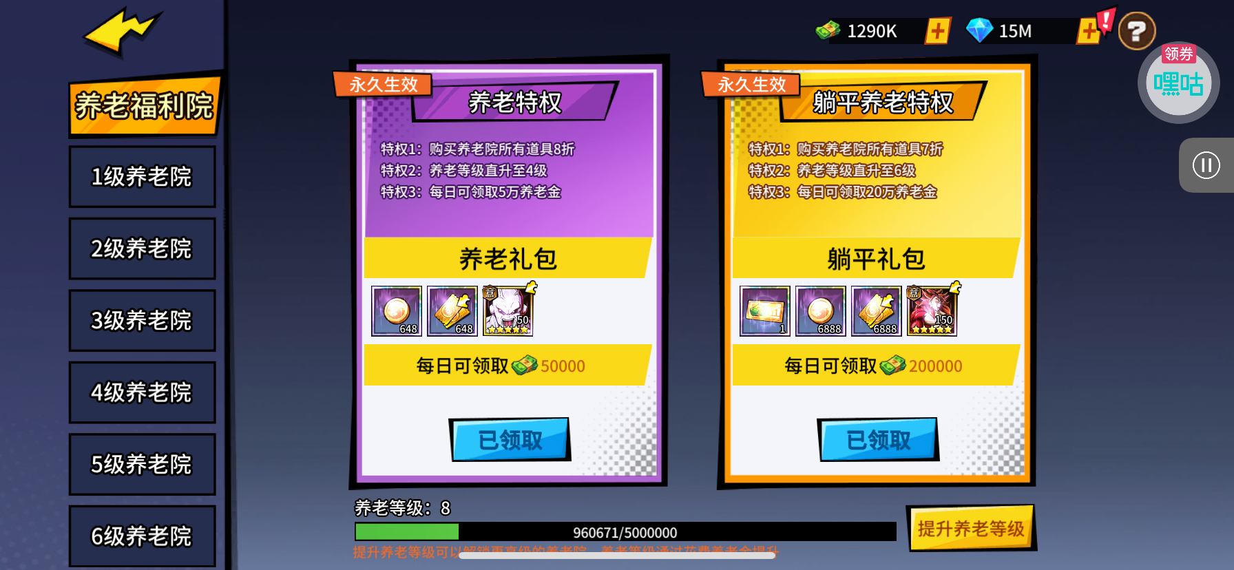 月卡等福利已购买,有提升空间,想玩挂机休闲直接入