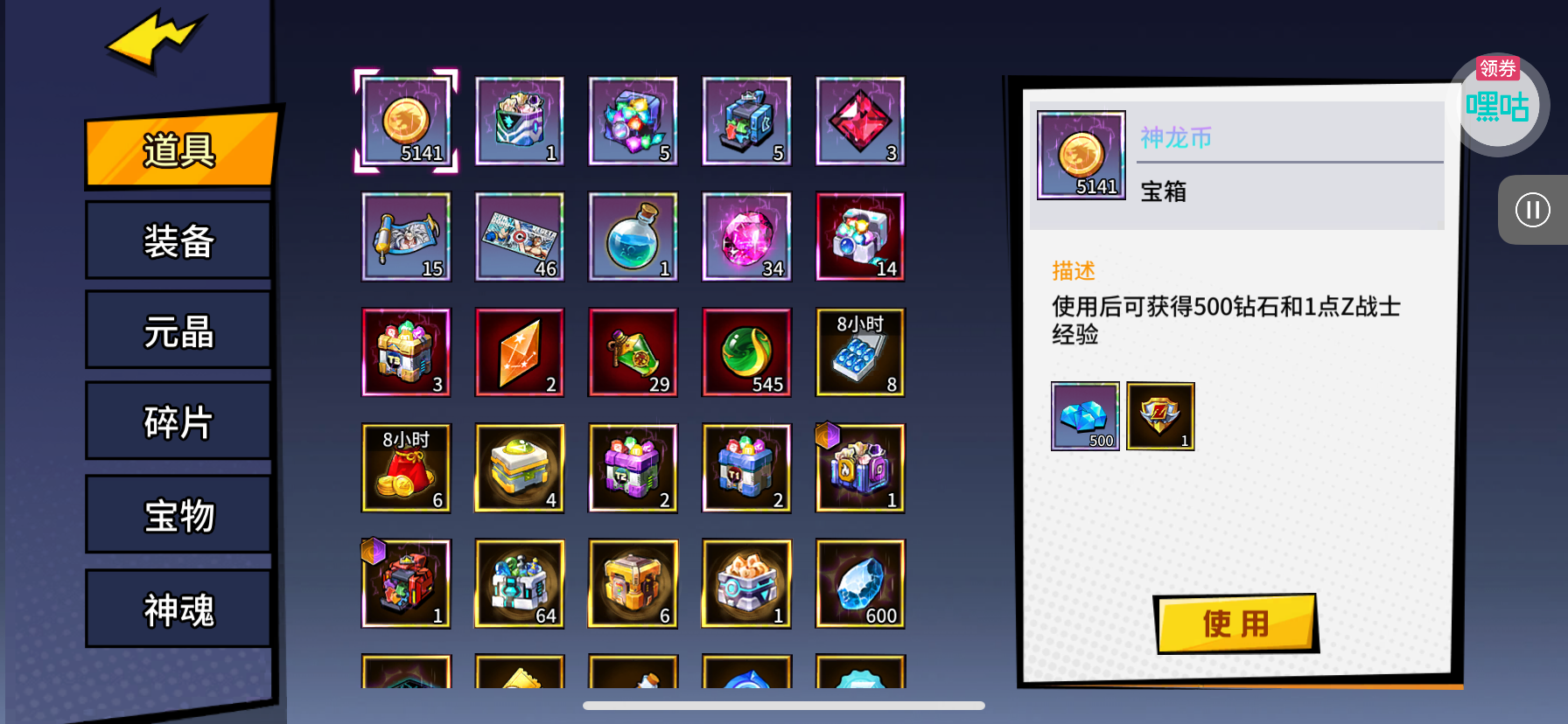 魂晶*888,魂师召唤券*10,武魂水晶*5(每个账号限领一次)
