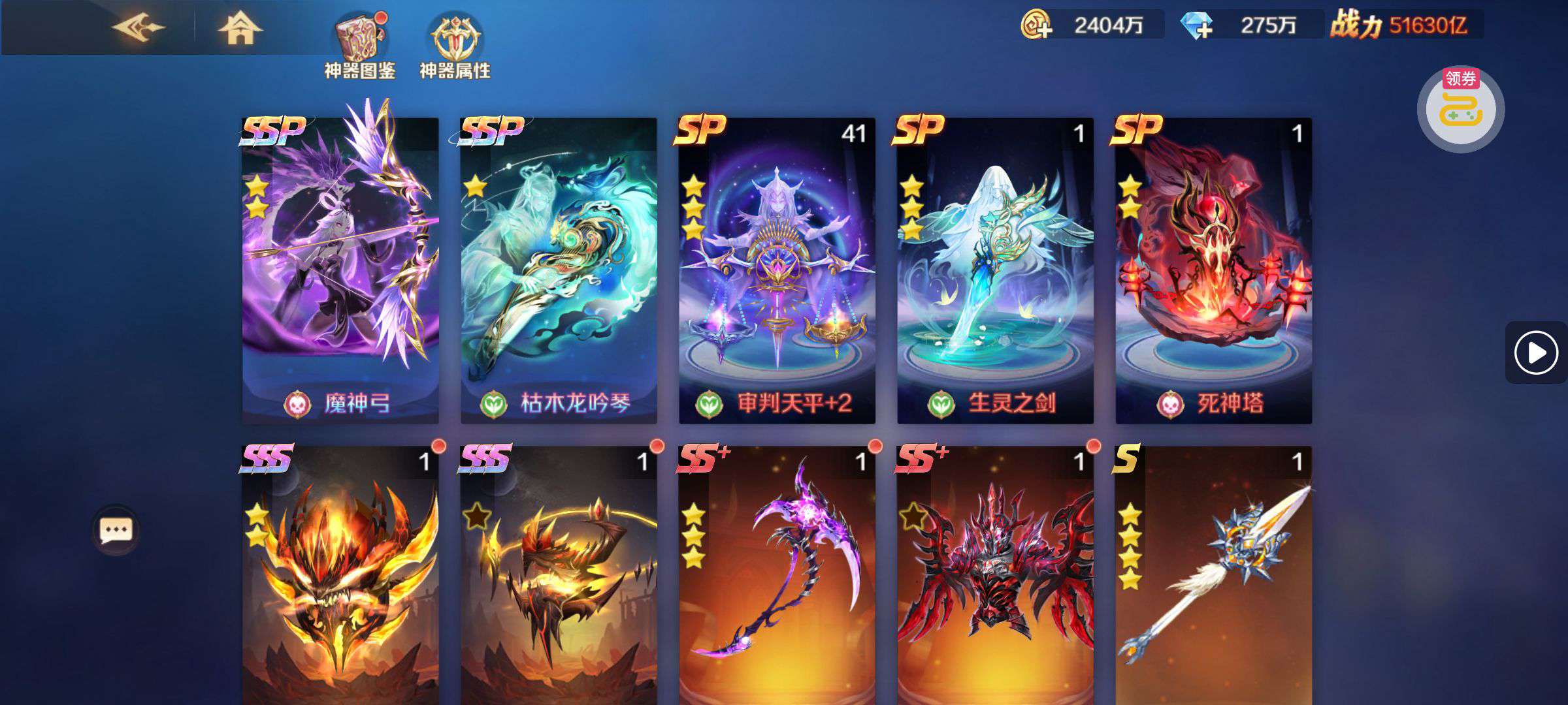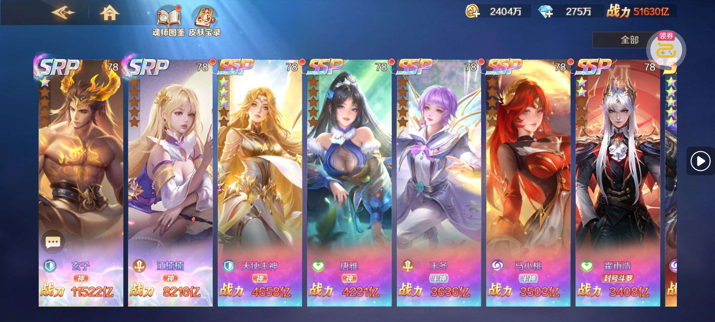 基本魂师,暗器,魂灵,神器都有,仓库爆满