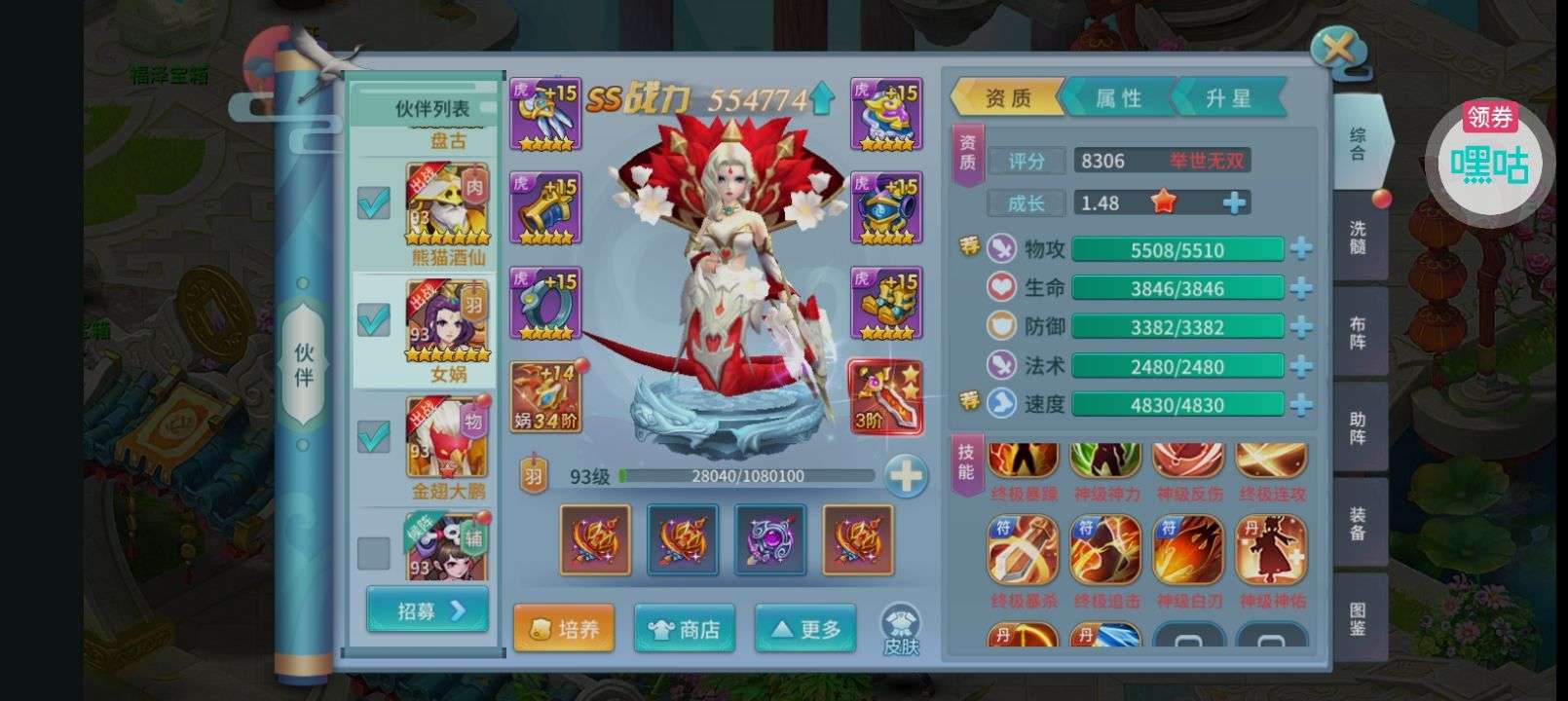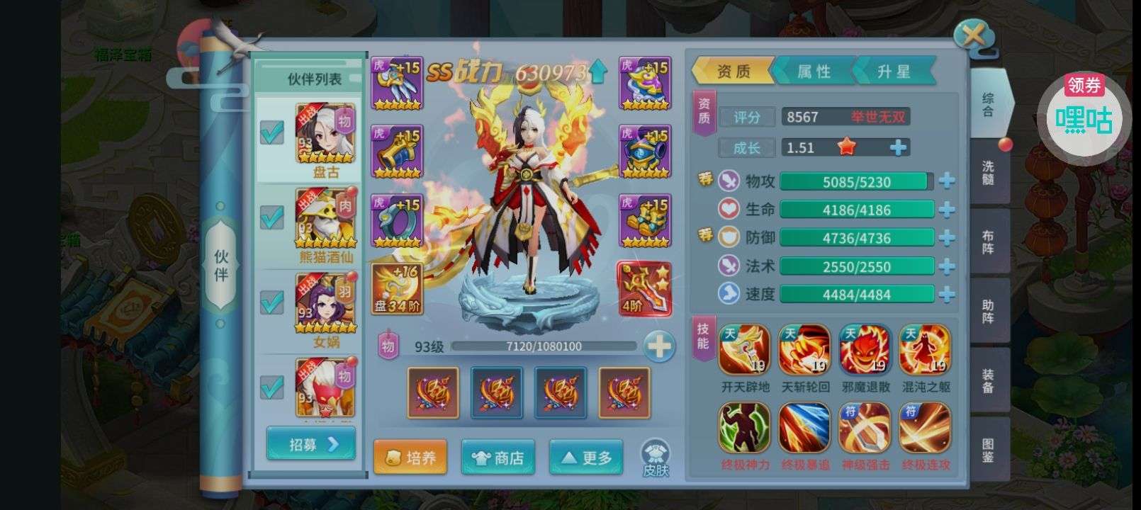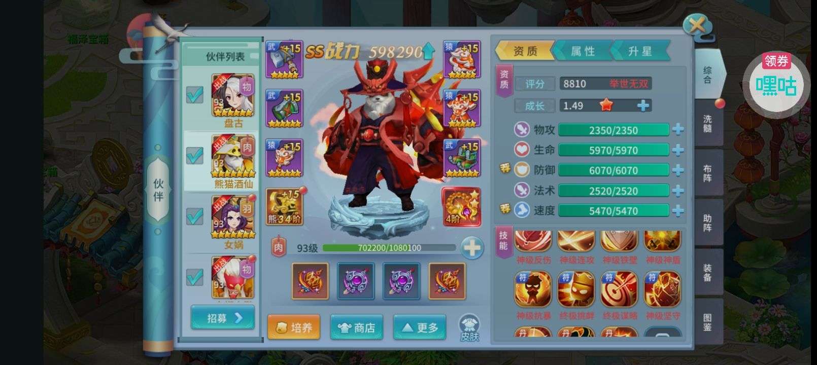 神器几乎齐全,战宠几乎齐全,宠物也还可以