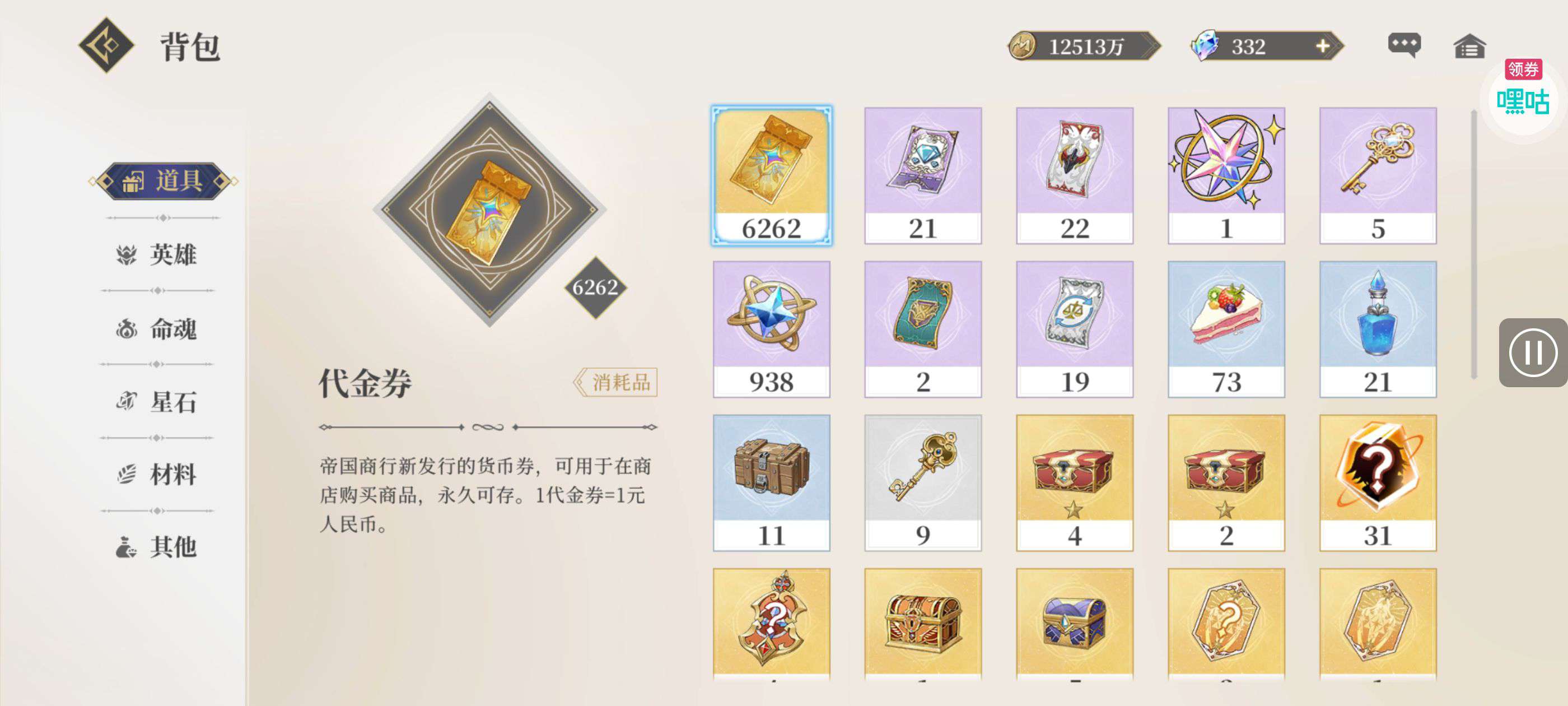 魂晶*888,魂师召唤券*10,武魂水晶*5(每个账号限领一次)