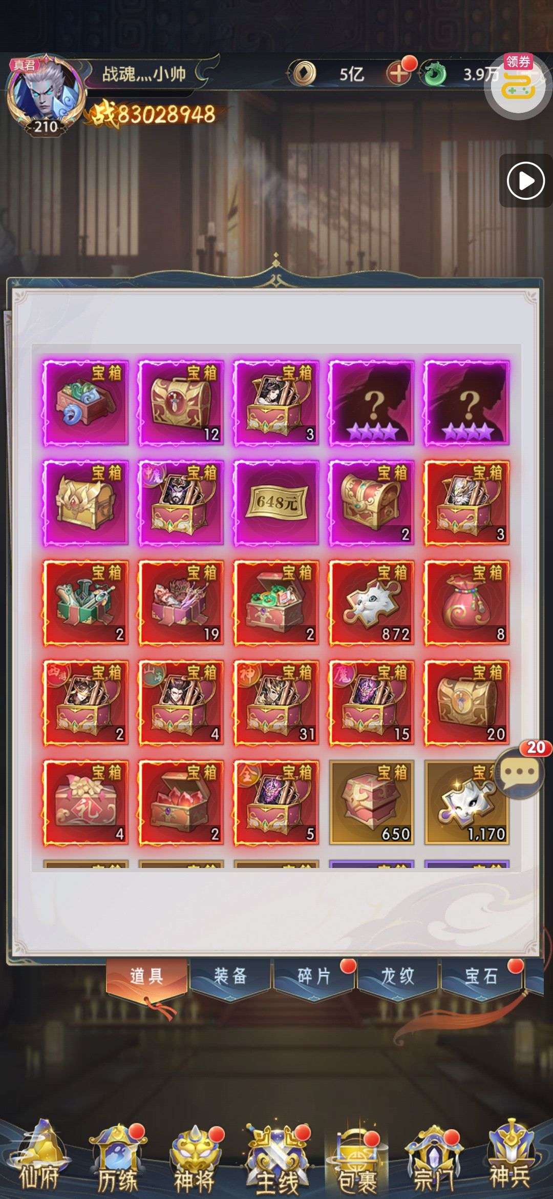 强化药剂*200、钻石招募币*20、金币*50W(每个账号限领一次)