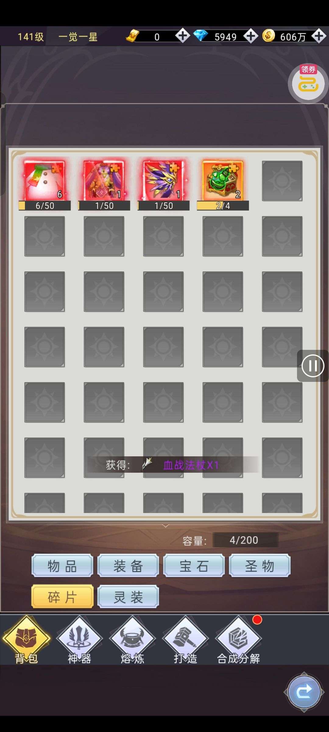 一堆圣晶石6小时*1、募魂令*10、暗淡原石*40(每个账号限领一次)