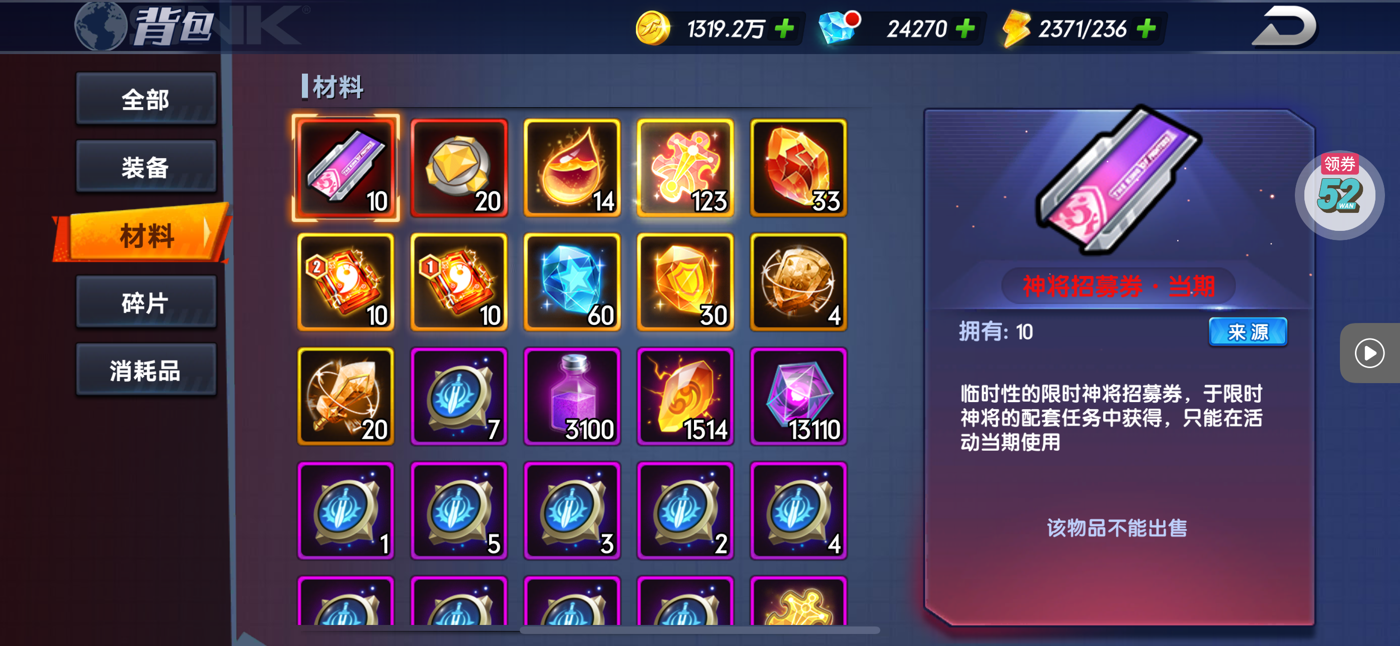 一堆圣晶石6小时*1、募魂令*10、暗淡原石*40(每个账号限领一次)