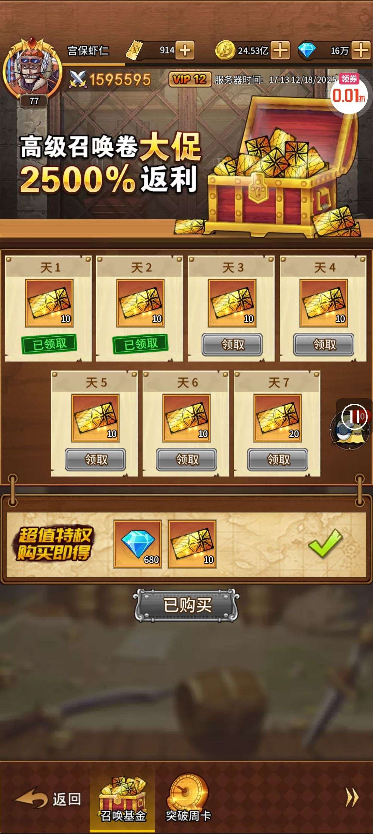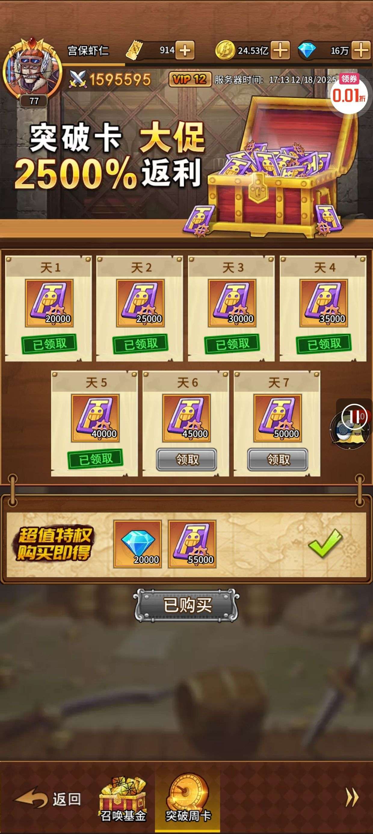 强化药剂*200、钻石招募币*20、金币*50W(每个账号限领一次)