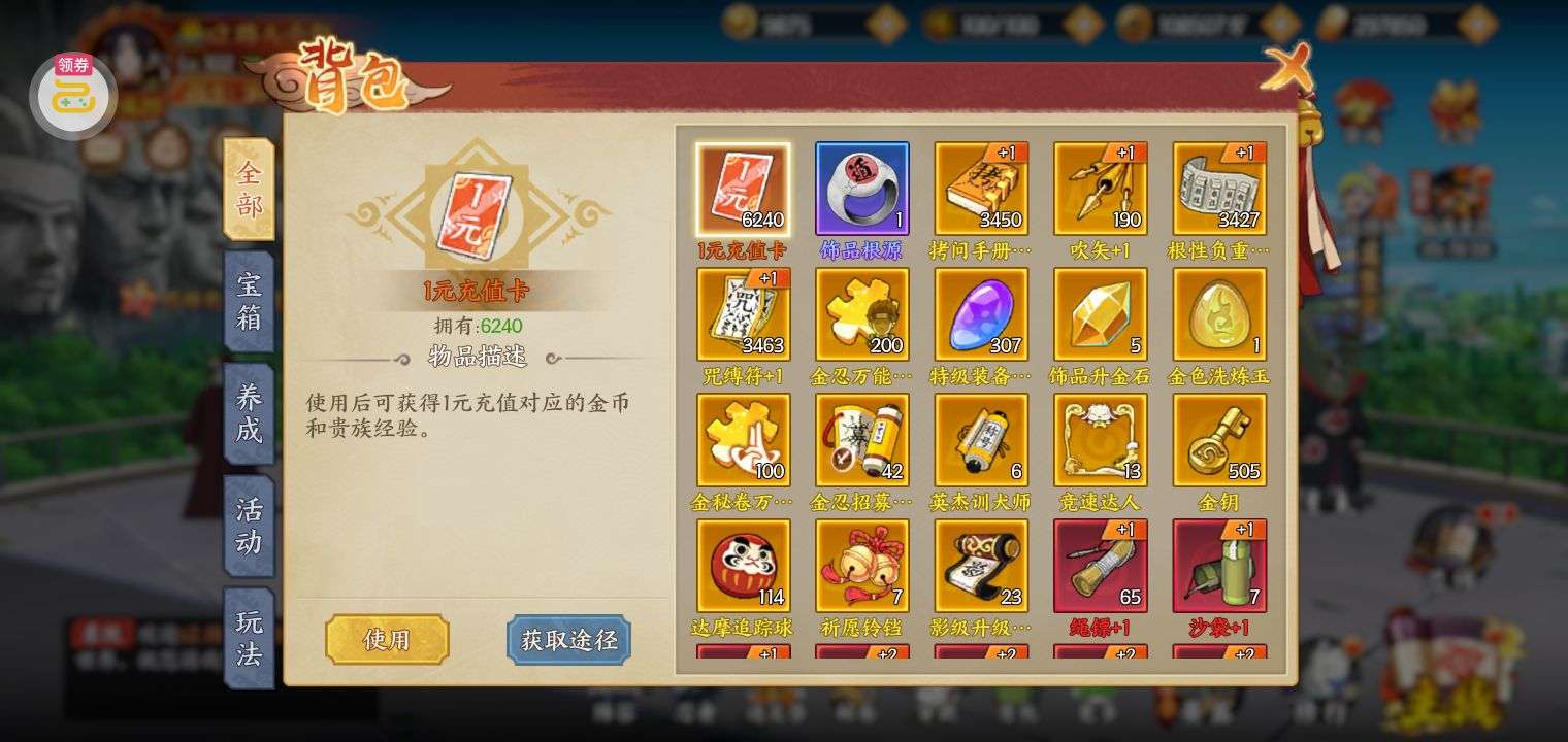 进阶丹*200,铜钱*100000,查克拉*100000(每个账号限领一次)