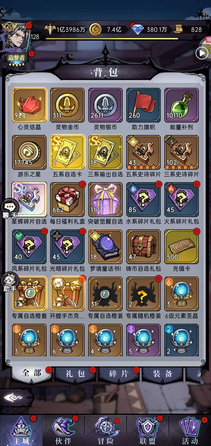 成长礼包几乎全买了,还有一些代金券和游戏中的的消费券 不玩是因为快期末了,不能再熬夜玩游戏了