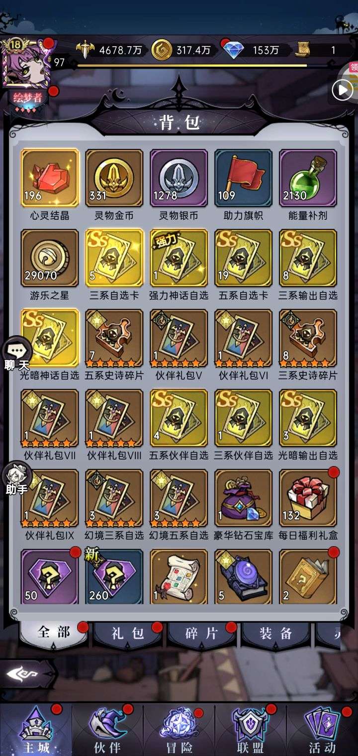 成长礼包几乎全买了,还有一些代金券和游戏中的的消费券 不玩是因为快期末了,不能再熬夜玩游戏了