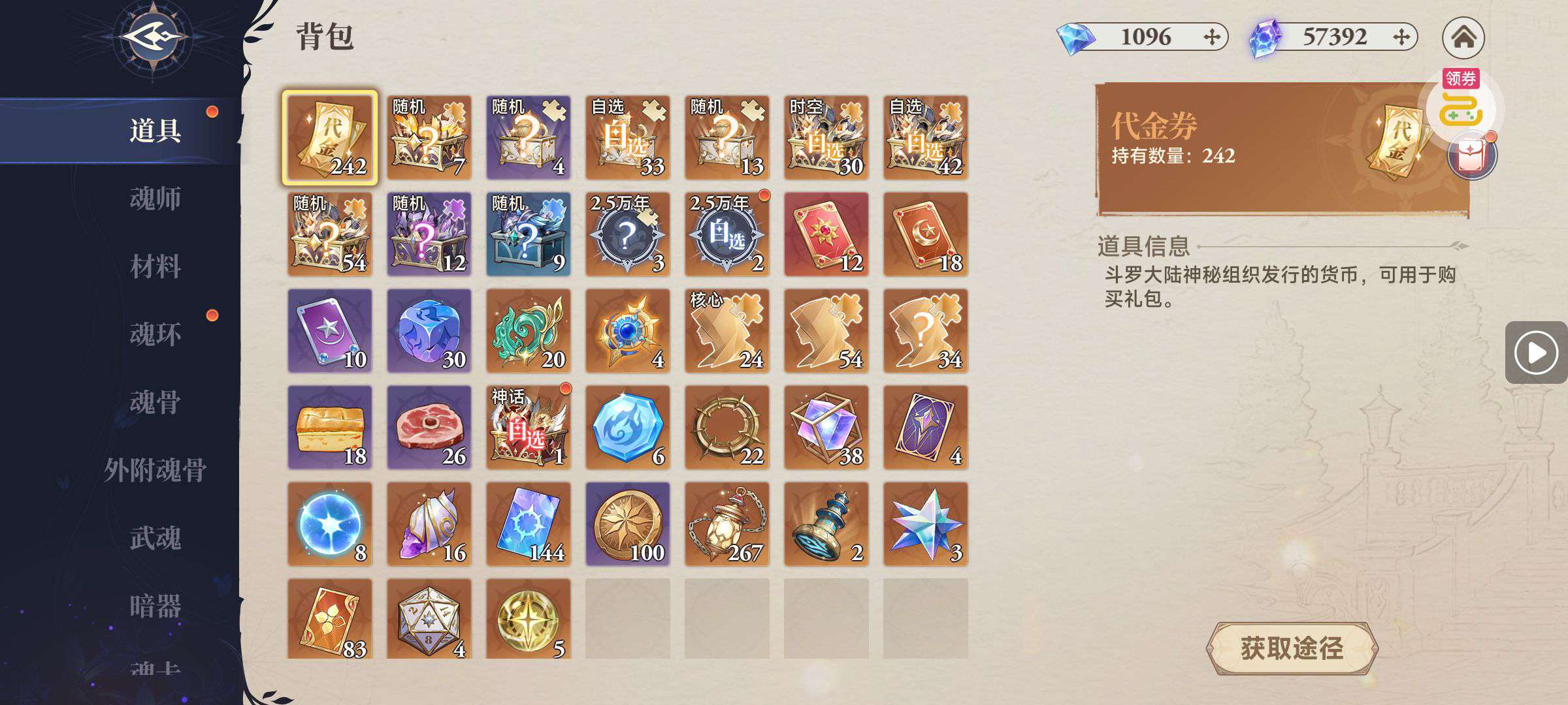 魂晶*888,魂师召唤券*10,武魂水晶*5(每个账号限领一次)