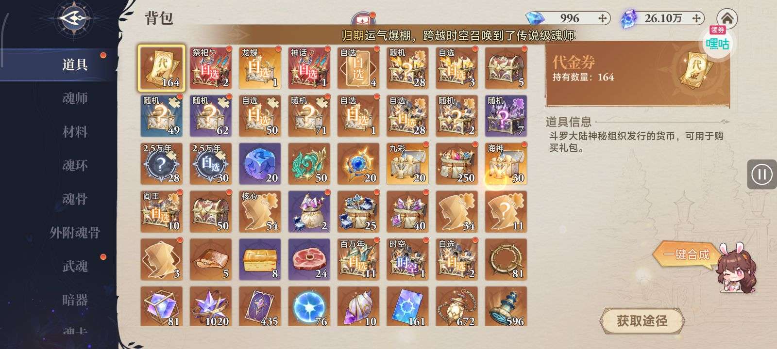 魂晶*888,魂师召唤券*10,武魂水晶*5(每个账号限领一次)