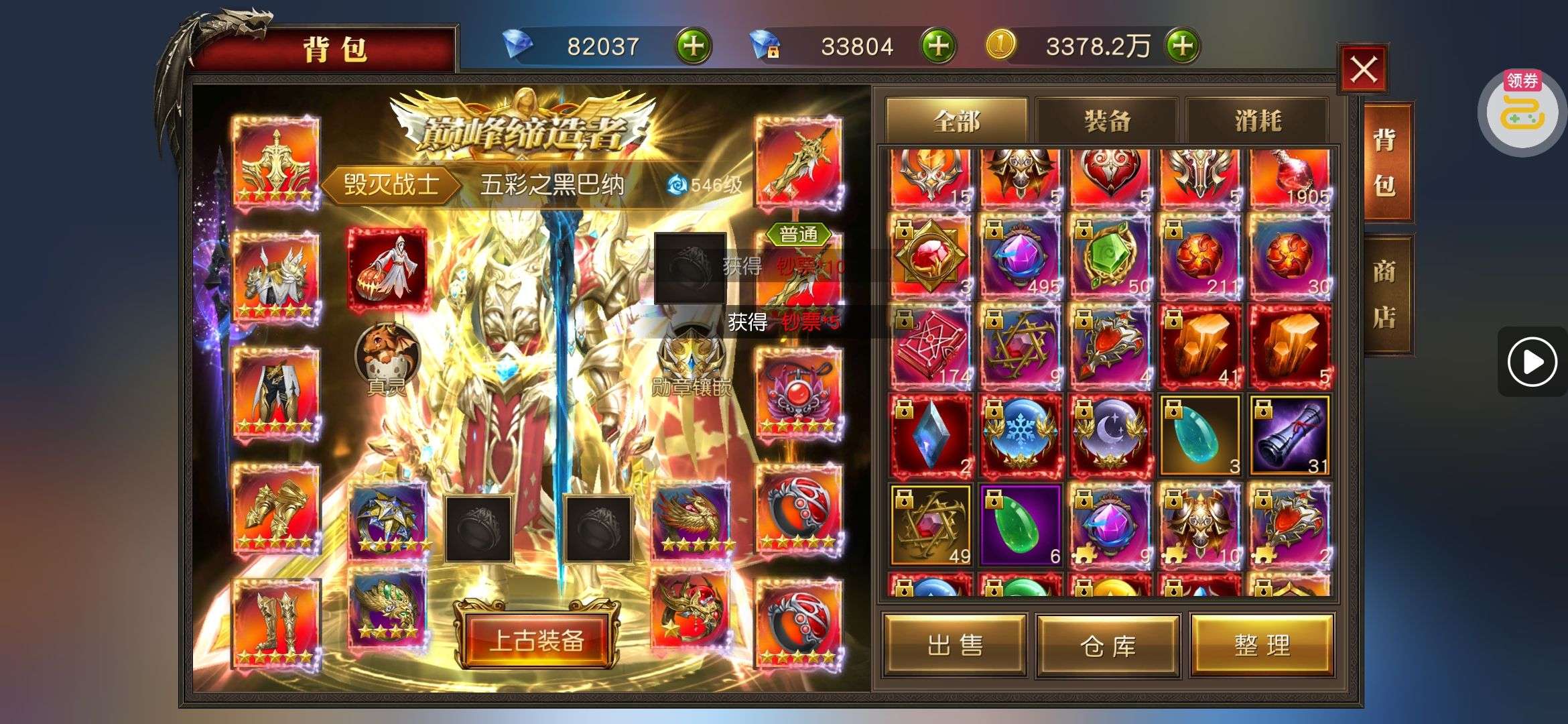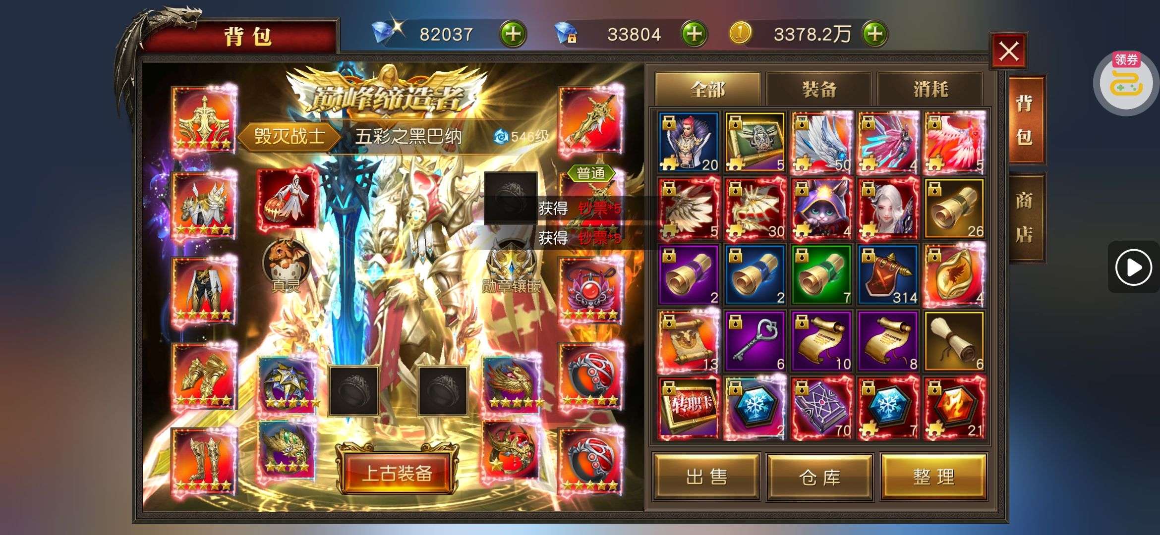 装备栏,仓库里有很多东西!物超所值,便宜售卖。