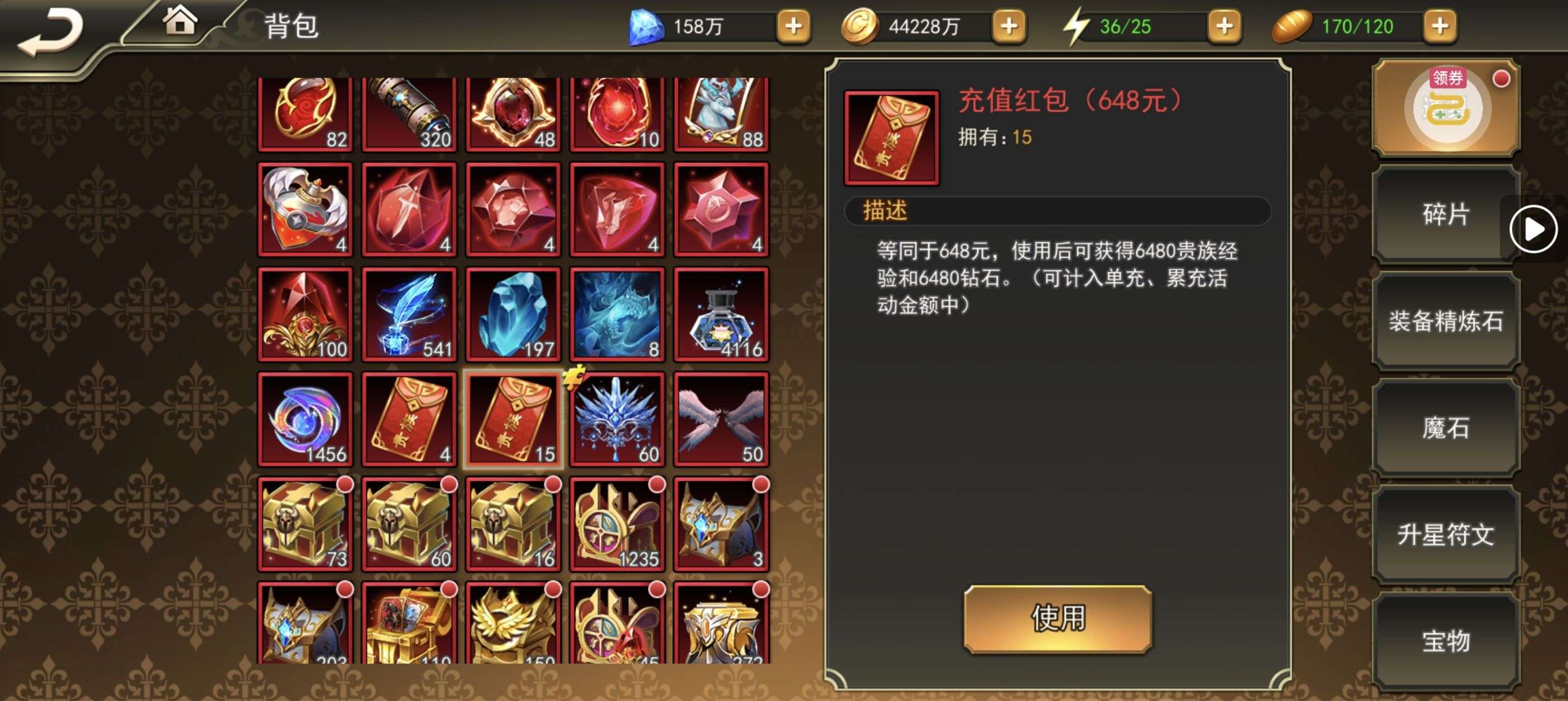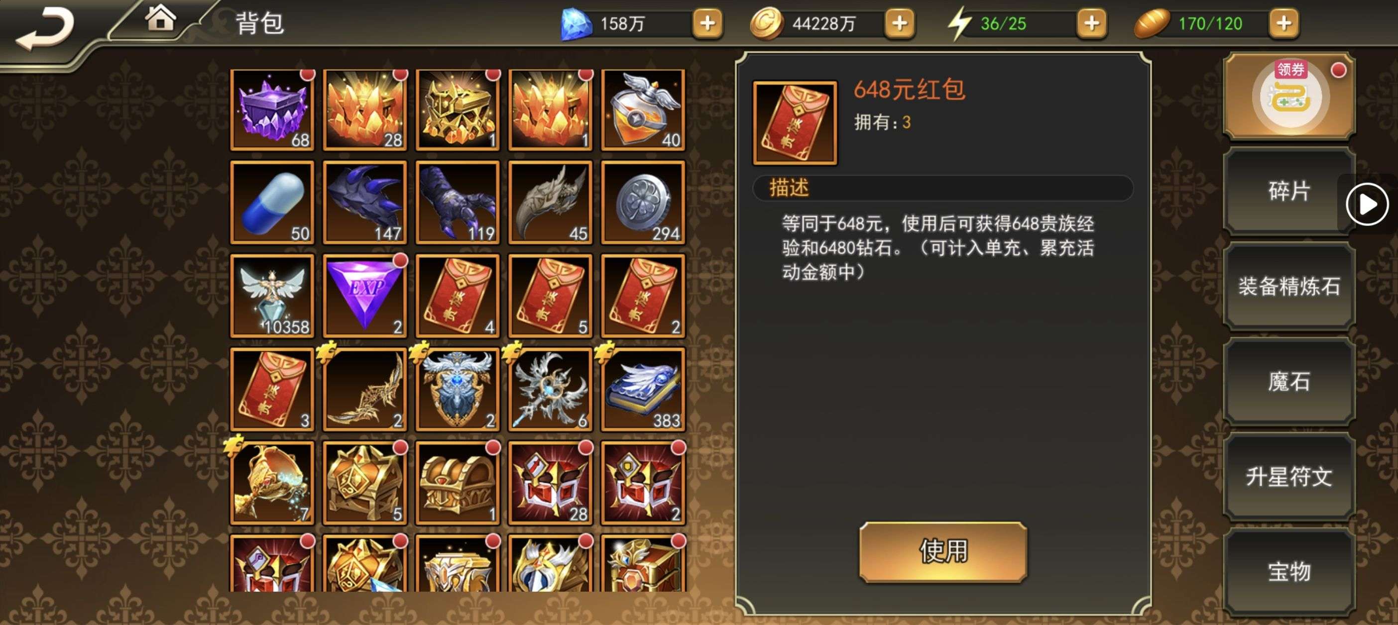 70多万亿战力,资源很丰富,钻石很多,红包很多,8耀金随便换随便玩,宝物全满,反正这价格买了肯定不后悔。光钻石和红包都不止这个价格了。