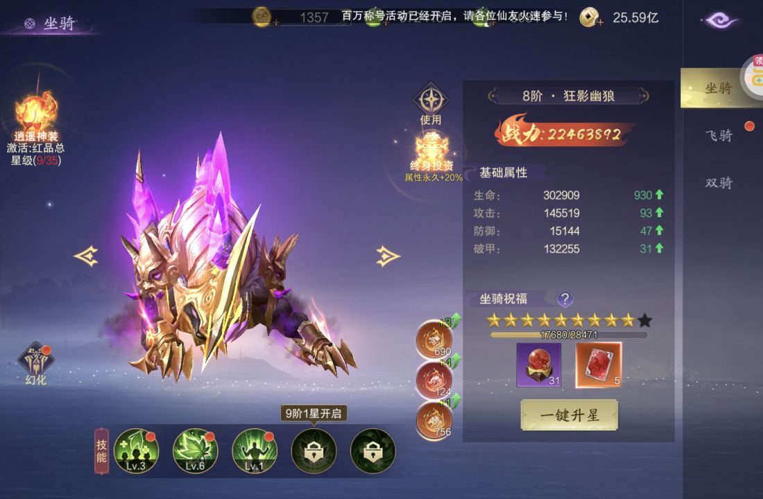 海量仙玉未使用,顶级坐骑、套装、特权已全部开通。。。