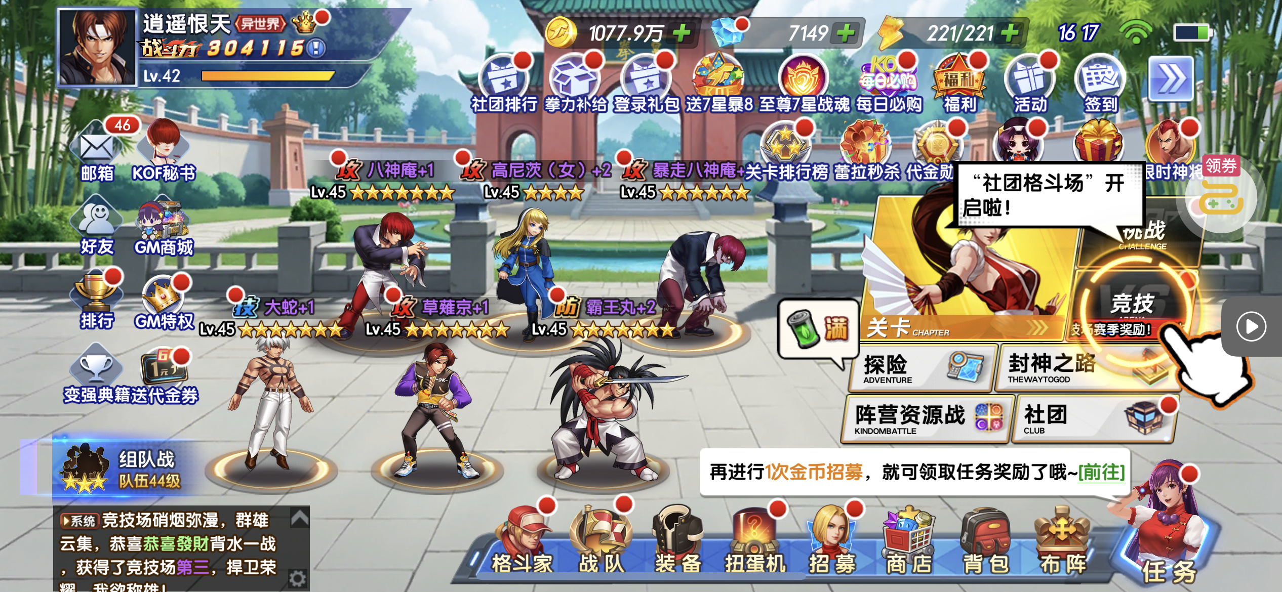 竞技场第一46区的玩家随便打,有啊修,吉丝,老高,火鸡,雷拉,紫颖