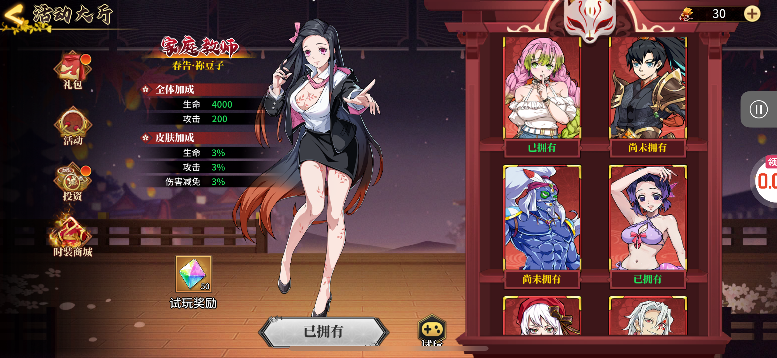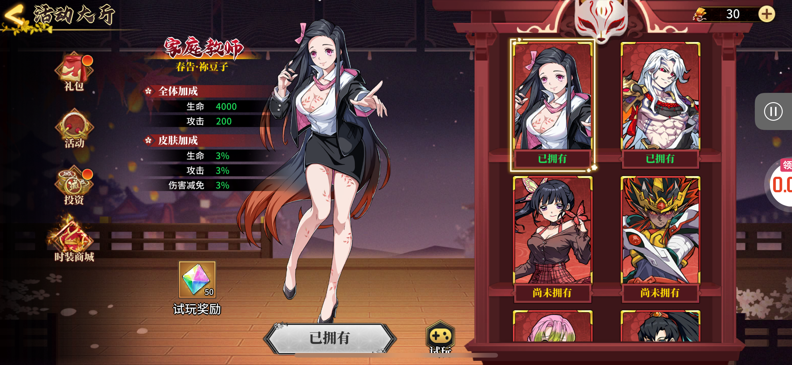 角色等级,57级有黑死谋 无一郎无惨