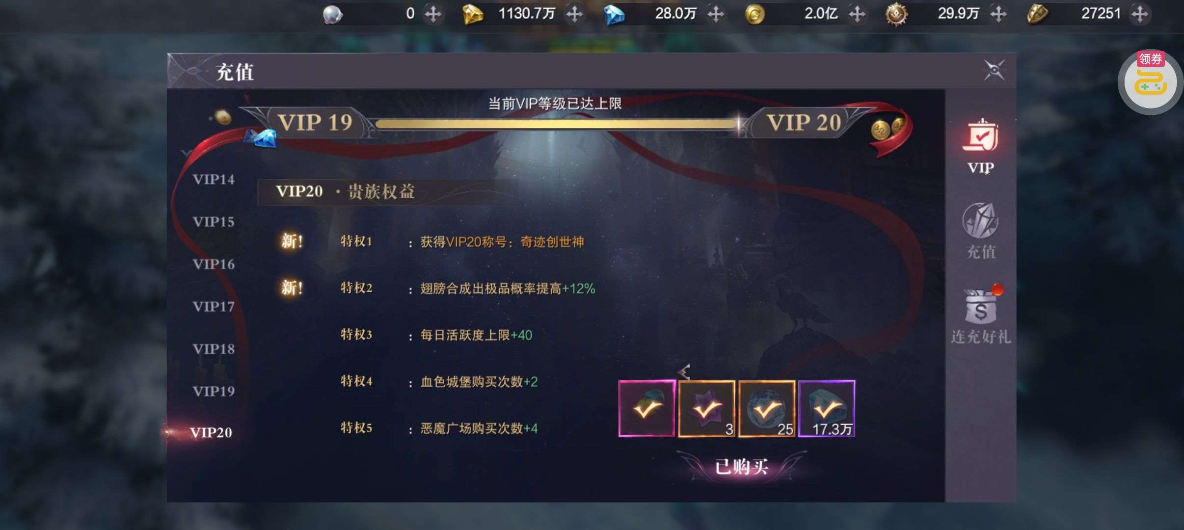 强化药剂*200、钻石招募币*20、金币*50W(每个账号限领一次)