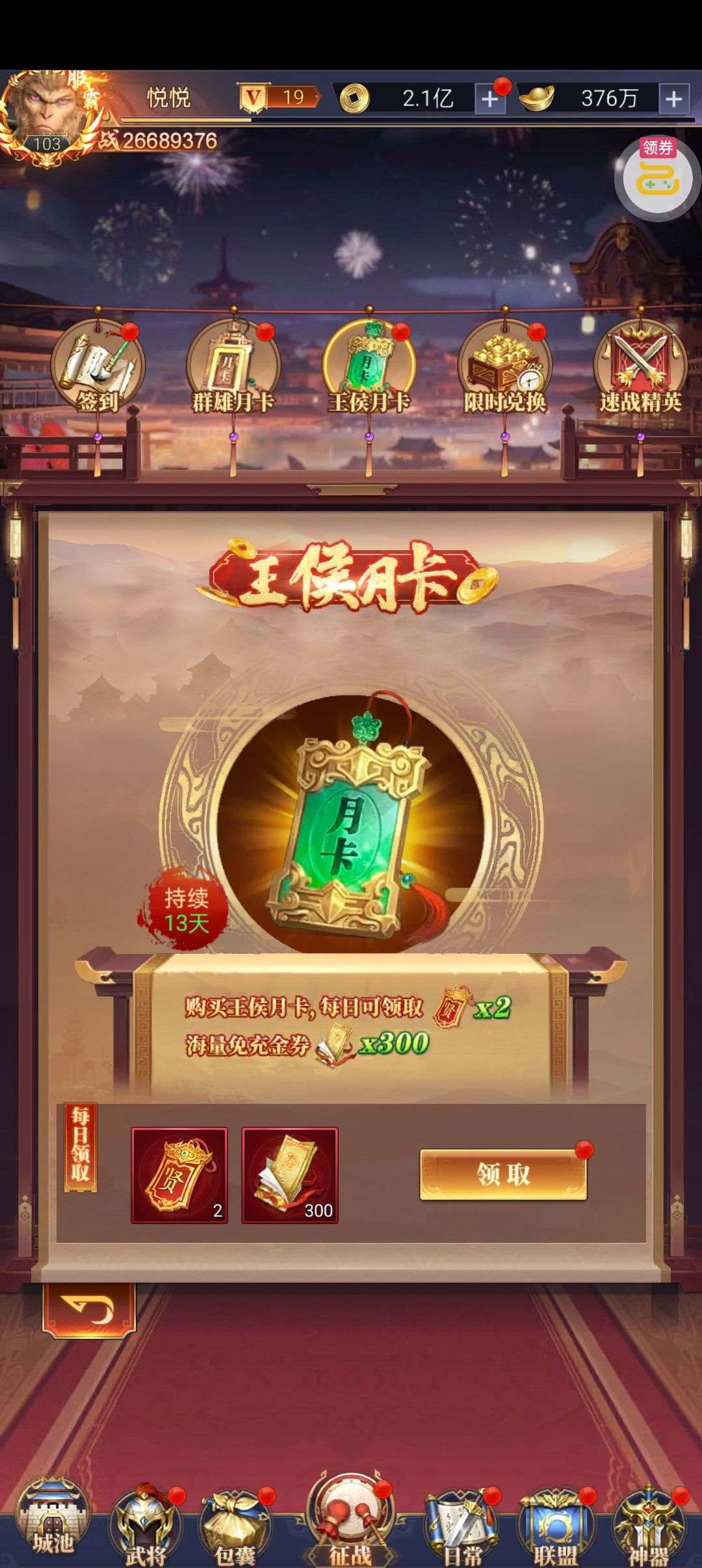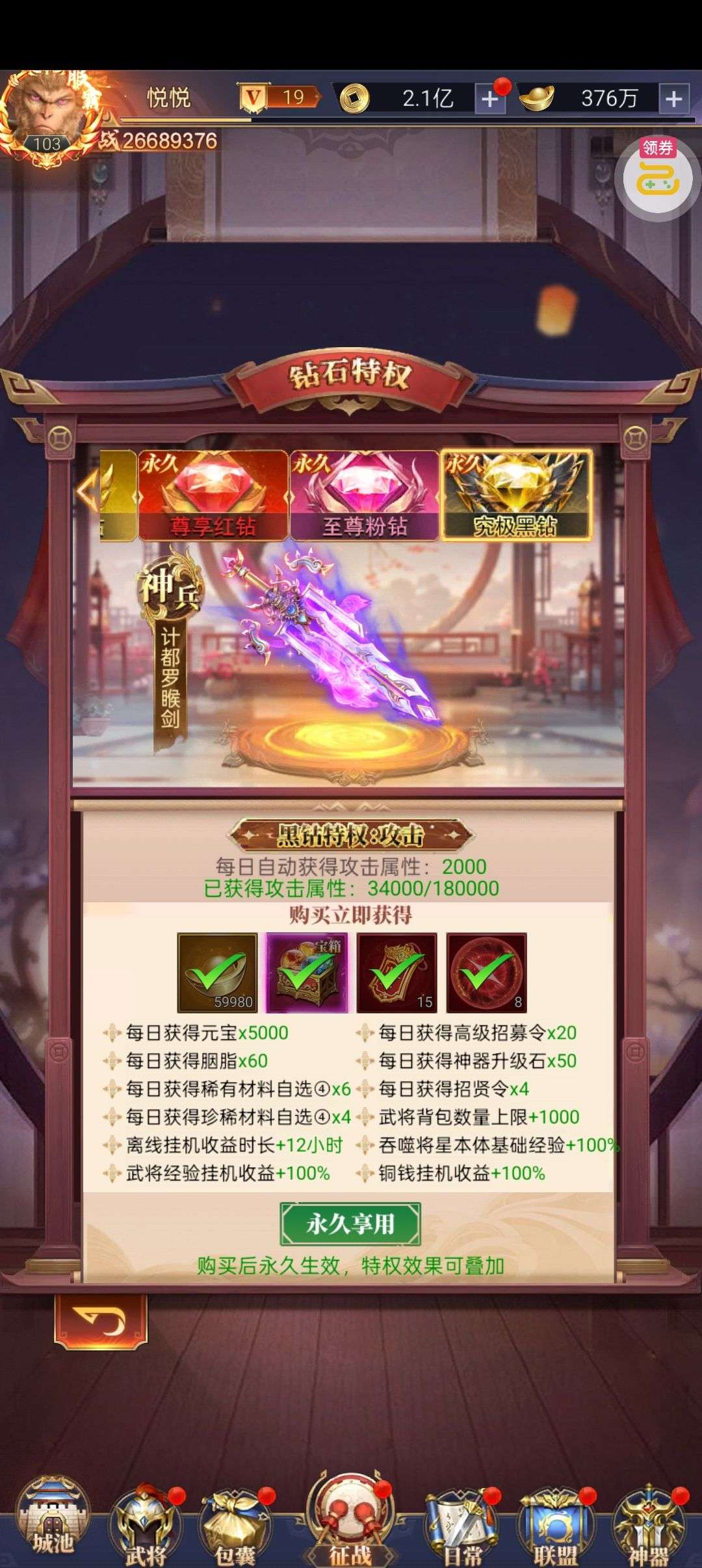 强化药剂*200、钻石招募币*20、金币*50W(每个账号限领一次)