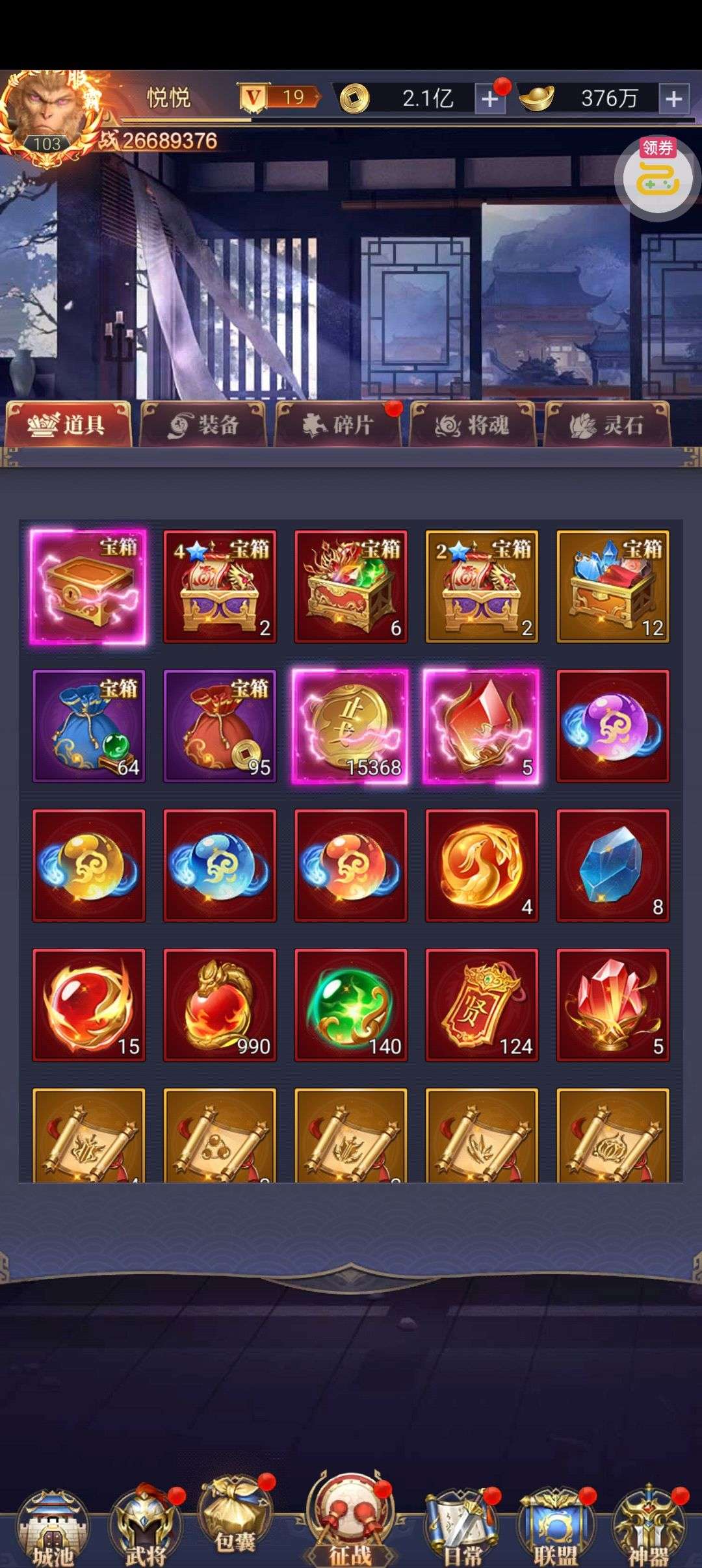 魂晶*888,魂师召唤券*10,武魂水晶*5(每个账号限领一次)