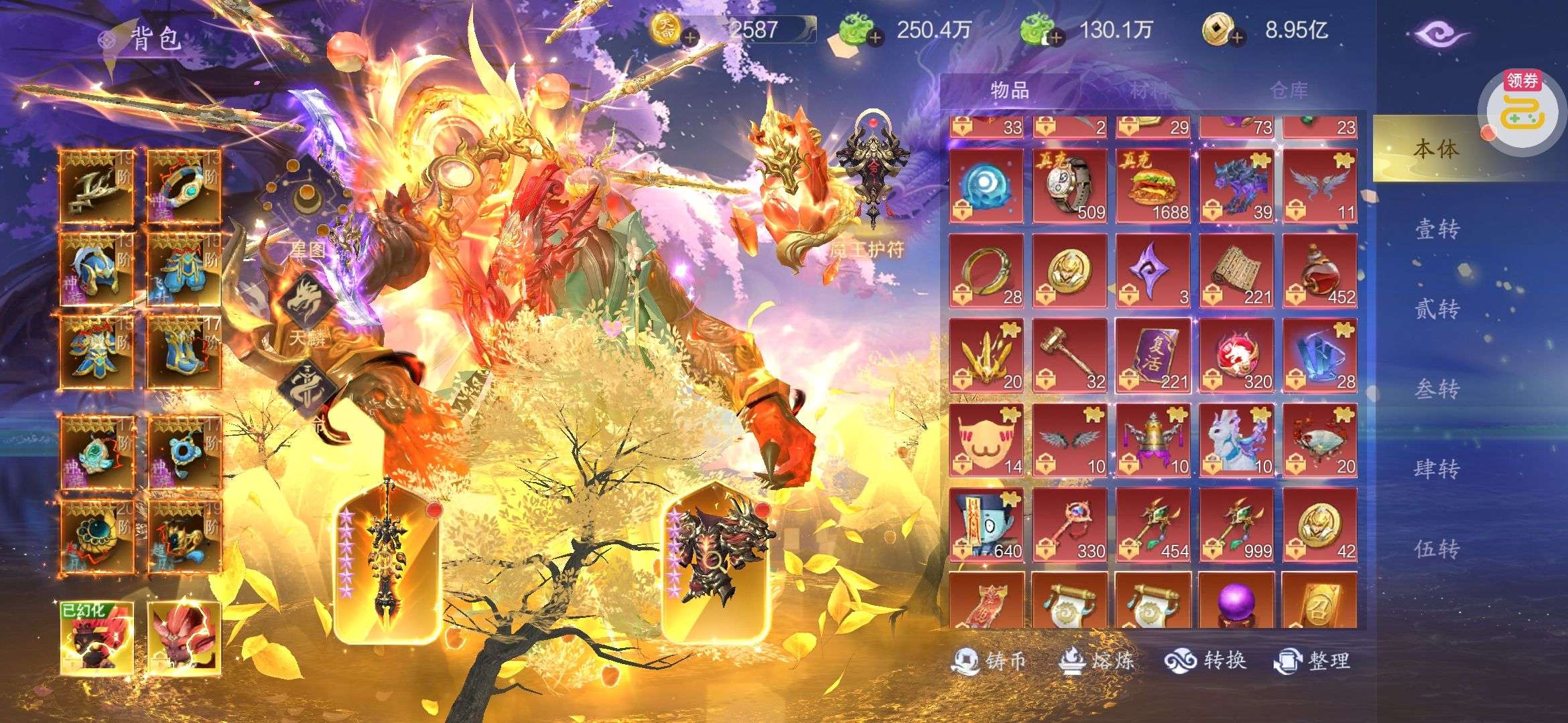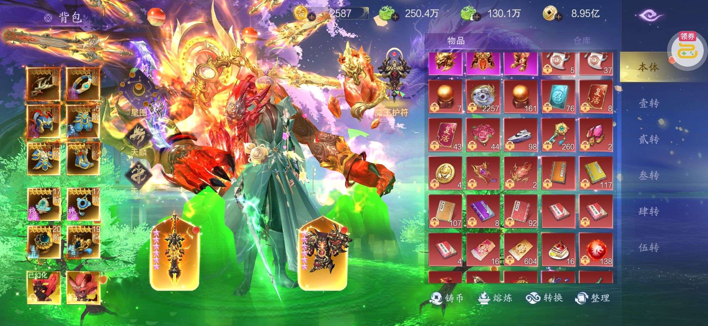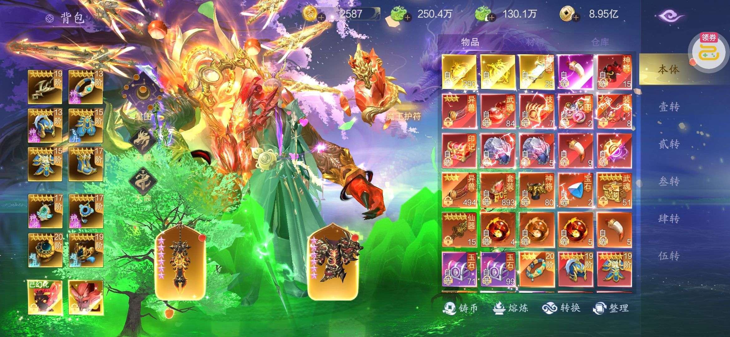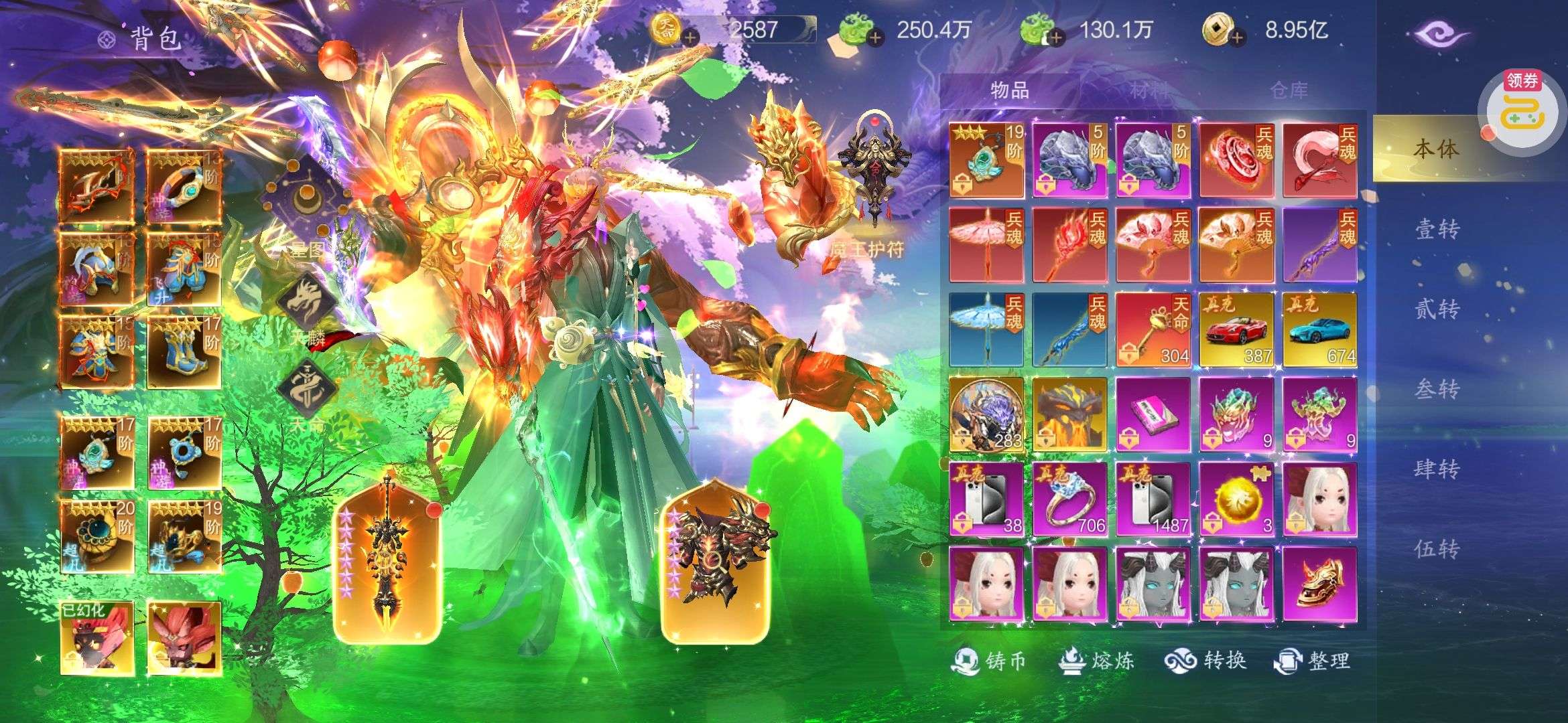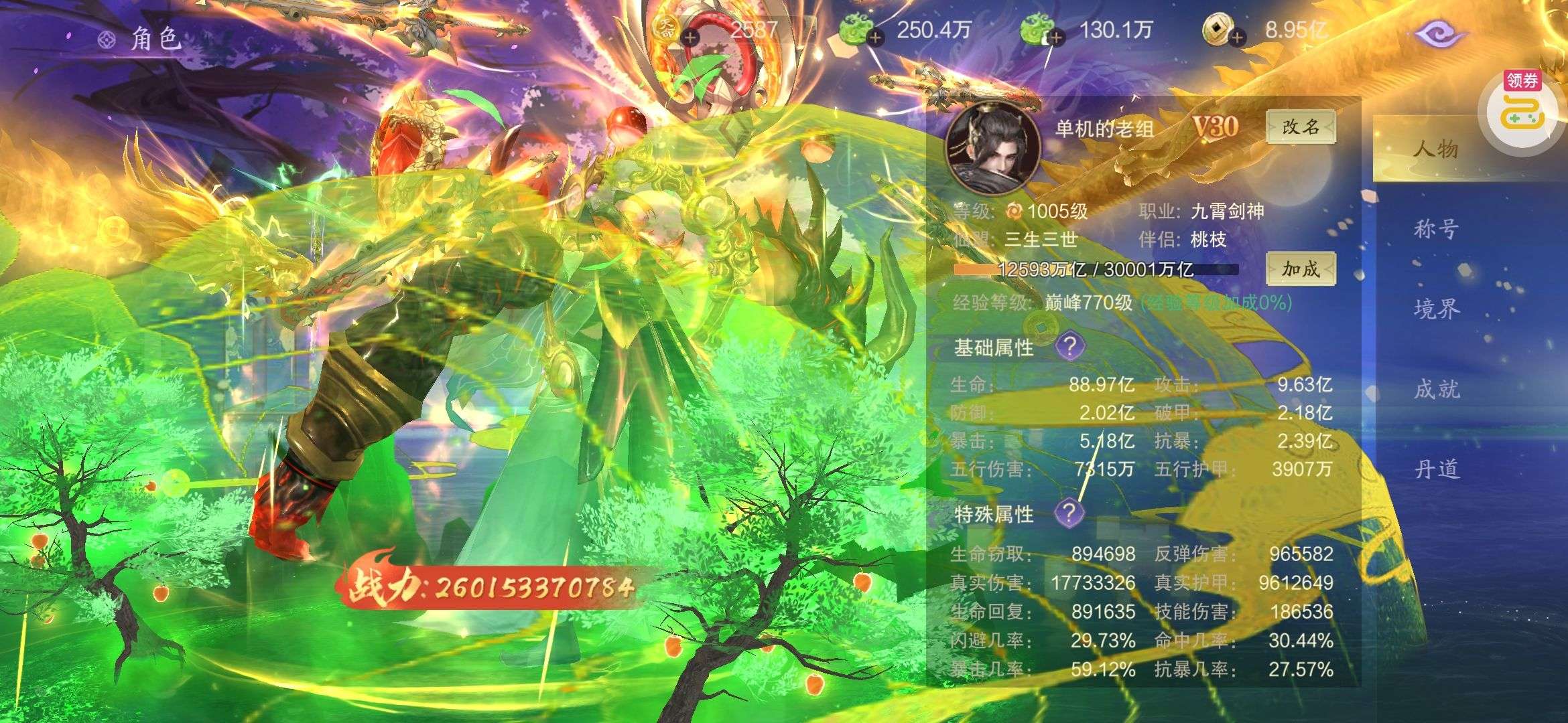 海量仙玉未使用,顶级坐骑、套装、特权已全部开通。。。